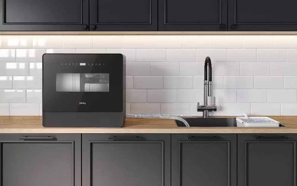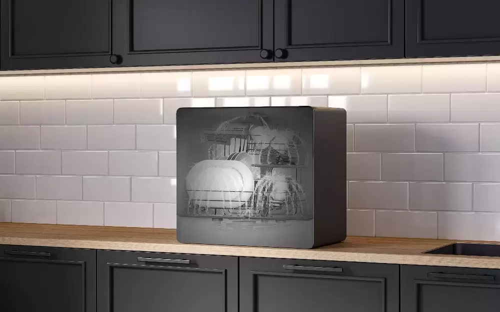 Отдельностоящая модель Кертинг отлично впишется в кухонный интерьер, главное — правильно выбрать место, чтобы подвести коммуникации. Компактные размеры позволяют разместить ее даже на очень маленькой кухне. В камеру можно загрузить ограниченное число комплектов: 5 шт. Комплектом считается набор посуды на одного человека, который нужен для полноценного приема пищи: глубокая и плоская тарелки, тарелка для салата, блюдце под чашку, сама чашка, ложка и вилка.