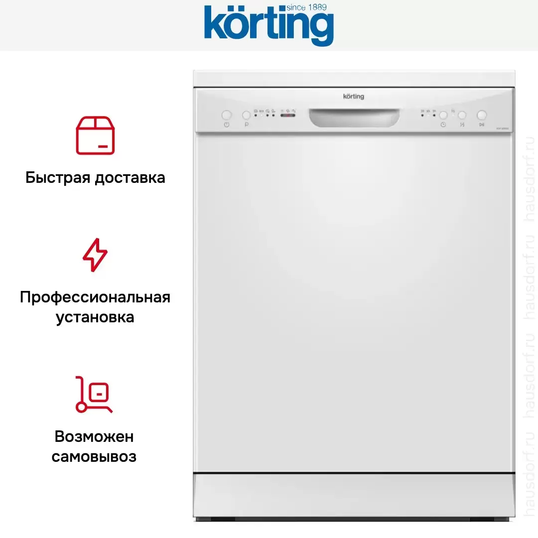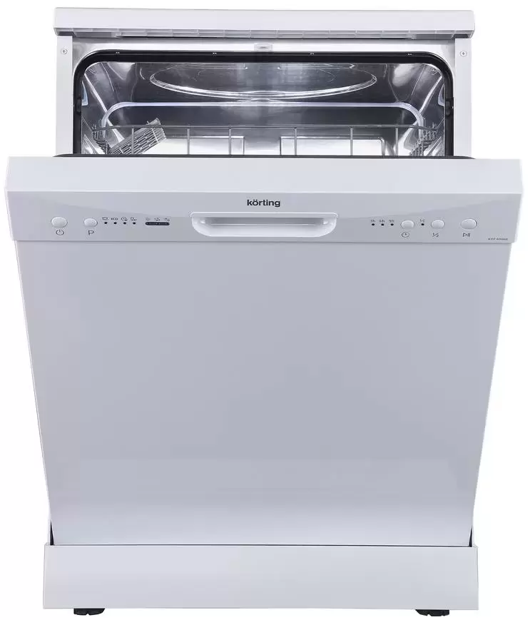 Korting KDF 60060 — отдельно стоящая полноразмерная посудомоечная машина в корпусе серебристого цвета с открытой панелью управления и полной защитой от протечек. Благодаря высоте 84,5 см эта машина может размещаться под столешницей. Для открывания дверцы служит удобная ручка. Вместимость посудомойки составляет 14 комплектов посуды. Рабочая камера изготовлена из термостойкой нержавеющей стали.