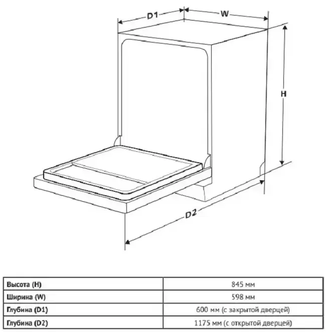 | Тип техники | Отдельностоящая посудомоечная машина | |