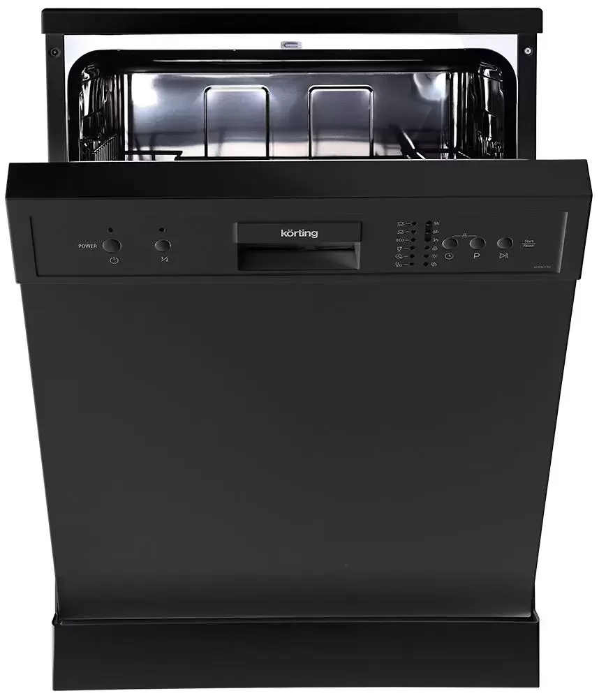 Удобное управление на открытой прямой панели: кнопки для включения и выключения прибора, выбора программы и установки уровня загрузки. Специальные LED-индикаторы помогают следить за процессом работы. Вы можете отложить старт, например, чтобы сэкономить на ночных коммунальных тарифах. В устройстве предусмотрено шесть программ. Быстрая мойка позволяет очистить небольшое количество посуды всего за 30 минут. В эко режиме прибор работает дольше, но при этом затрачивает меньше воды и электроэнергии. Программа интенсивной мойки позволяет очистить застарелую грязь и застывший жир. Стандартный режим предназначен для ежедневного использования.