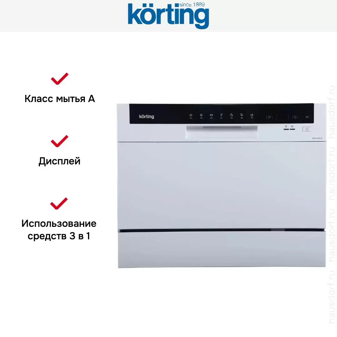 Korting KDF 2050 W — компактная посудомоечная машина с системой защиты от протечек AquaControl. Устройство отдельностоящее. Вы можете разместить его в любом месте. Модель характеризуется наличием семи специализированных программ мойки и предусматривает возможность подключения к горячей воде. Благодаря этому можно сократить затраты на электроэнергию и уменьшить время работы прибора.