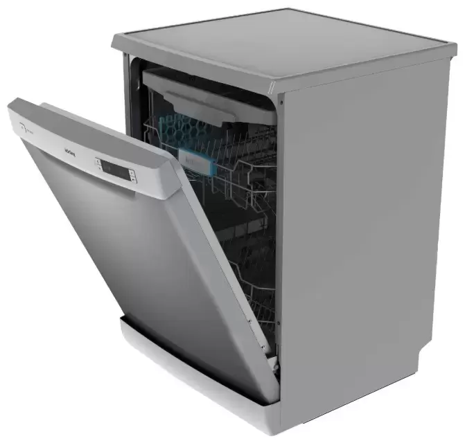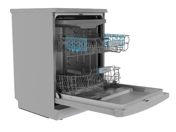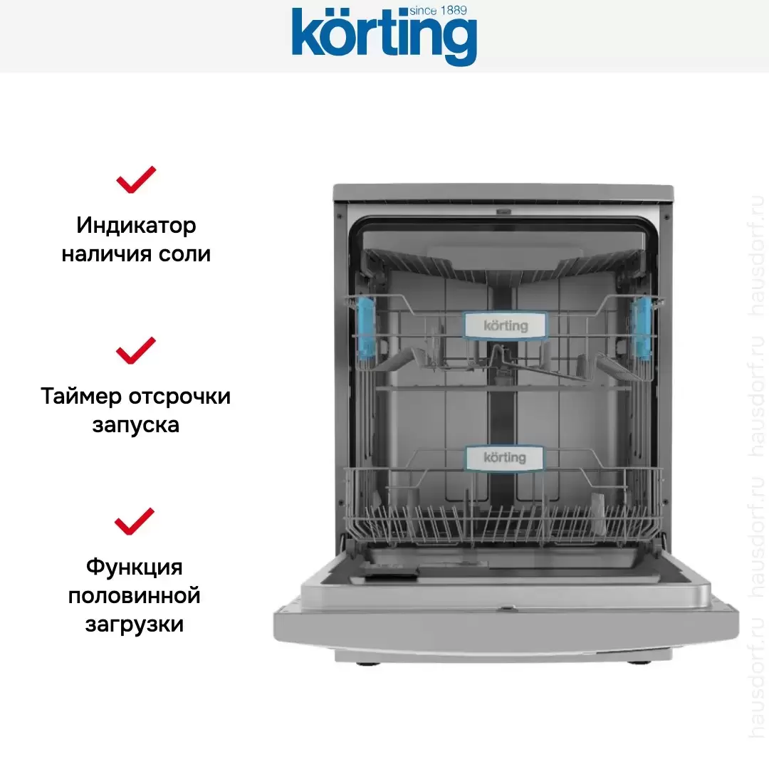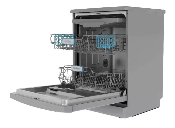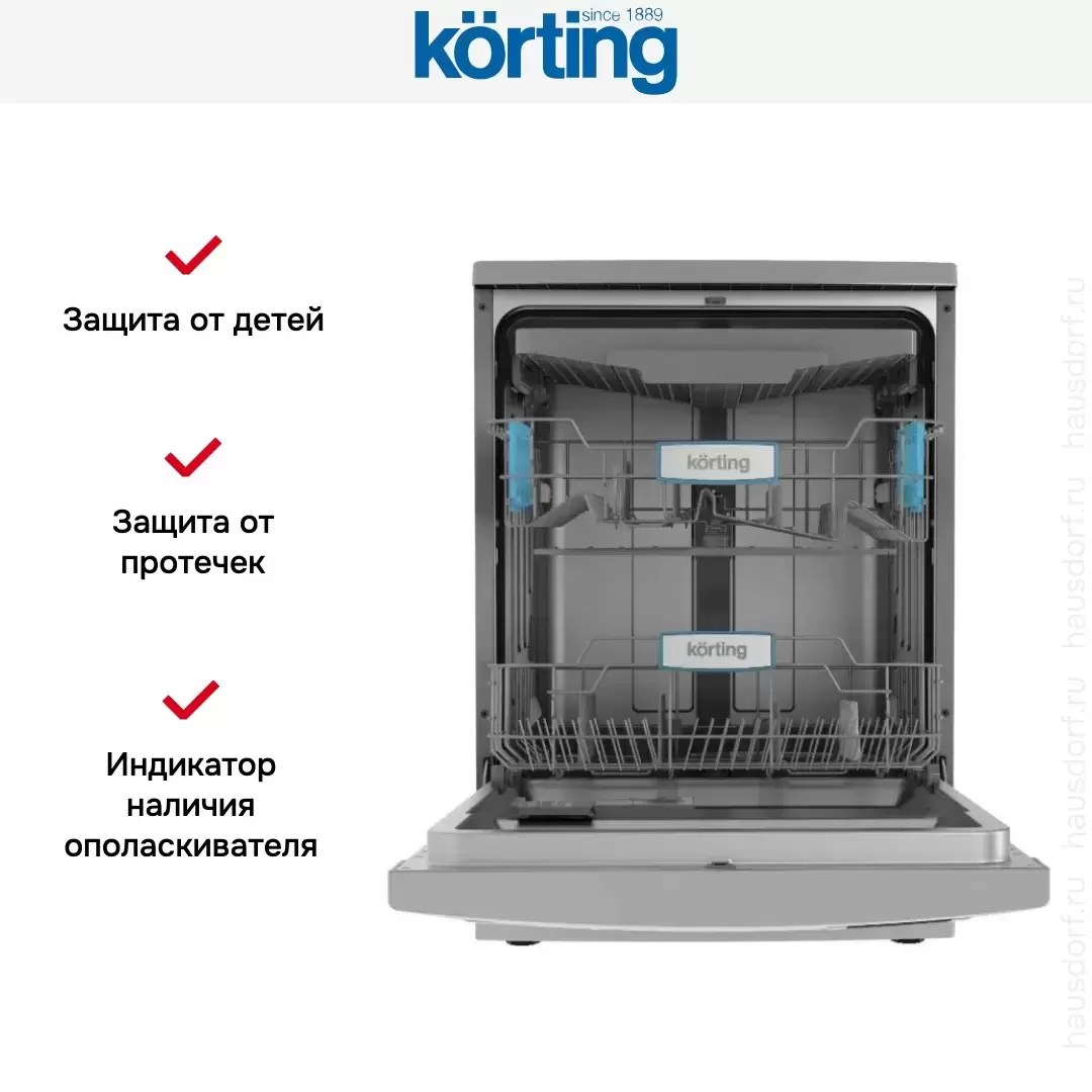 Отдельностоящая модель Кертинг отлично впишется в кухонный интерьер, главное — правильно выбрать место, чтобы подвести коммуникации. Имеет стандартные размеры, поэтому может не поместиться на очень маленькой кухне. В камеру можно загрузить ограниченное число комплектов: 14 шт. Комплектом считается набор посуды на одного человека, который нужен для полноценного приема пищи: глубокая и плоская тарелки, тарелка для салата, блюдце под чашку, сама чашка, ложка и вилка.