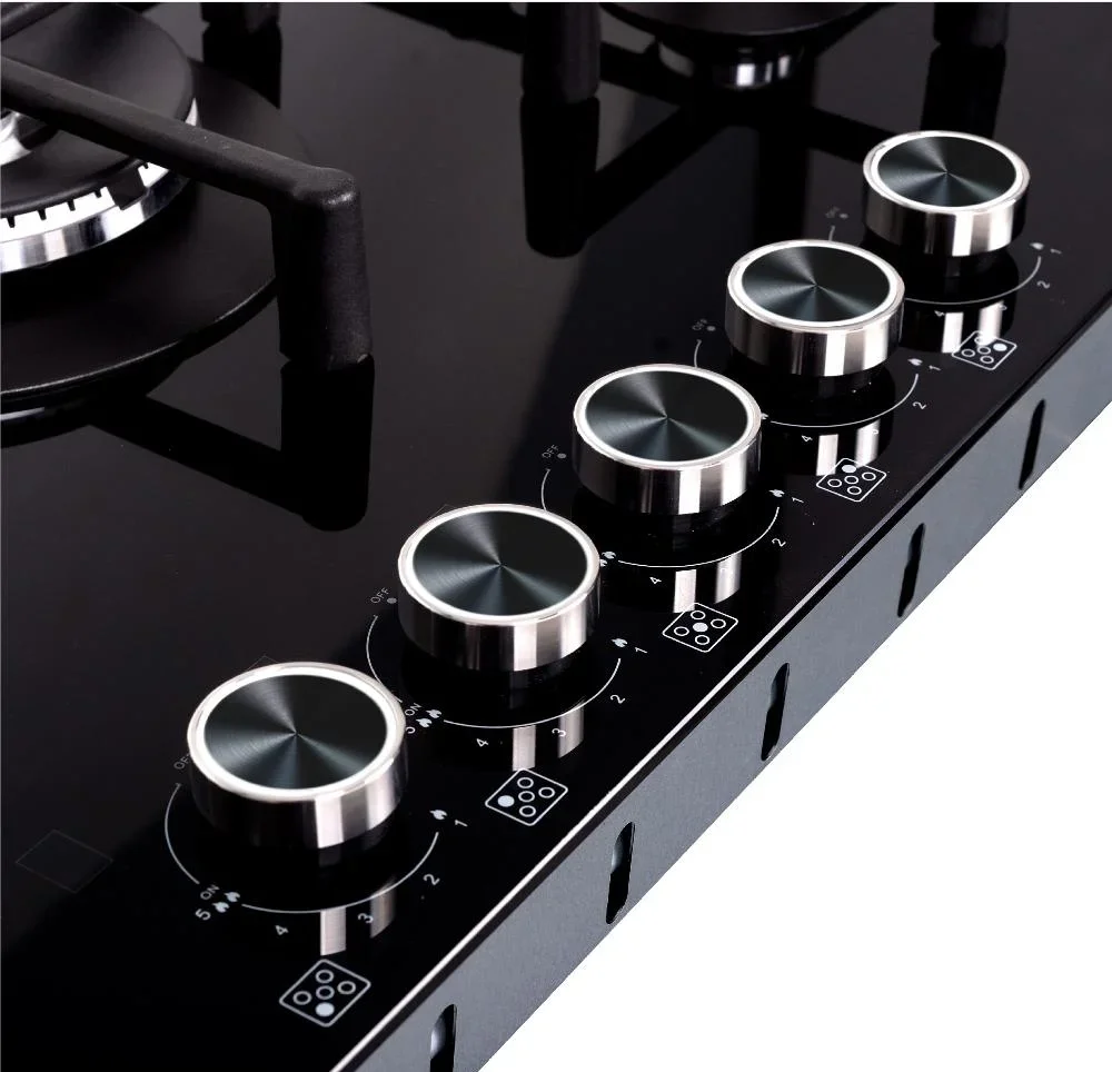 Выбор газовой варочной панели чаще всего обусловлен тем, что в частный дом или квартиру проведен именно газ в качестве обогрева. Работать с этой моделью довольно просто, так как мощность нагрева видна невооруженным взглядом — по силе огня в горелке. Количество конфорок в этой модели: 5.
