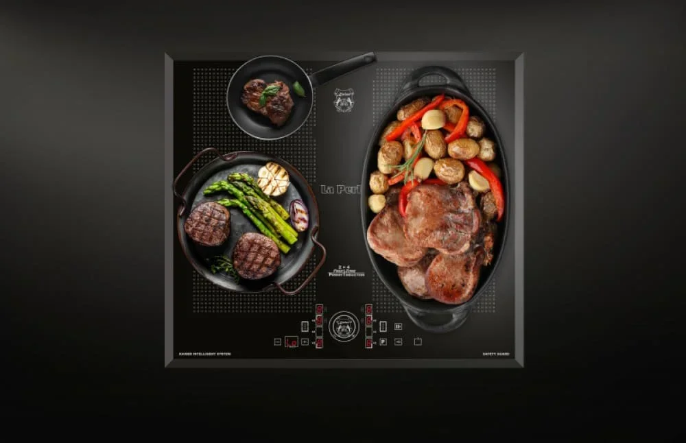 Особенности панели конфорок, на которые стоит обратить внимание: Induction, FlexZone. Некоторые конфорки можно использовать не только по отдельности, но и как общее пространство, внутри которого расставлять посуду, как вам удобно.