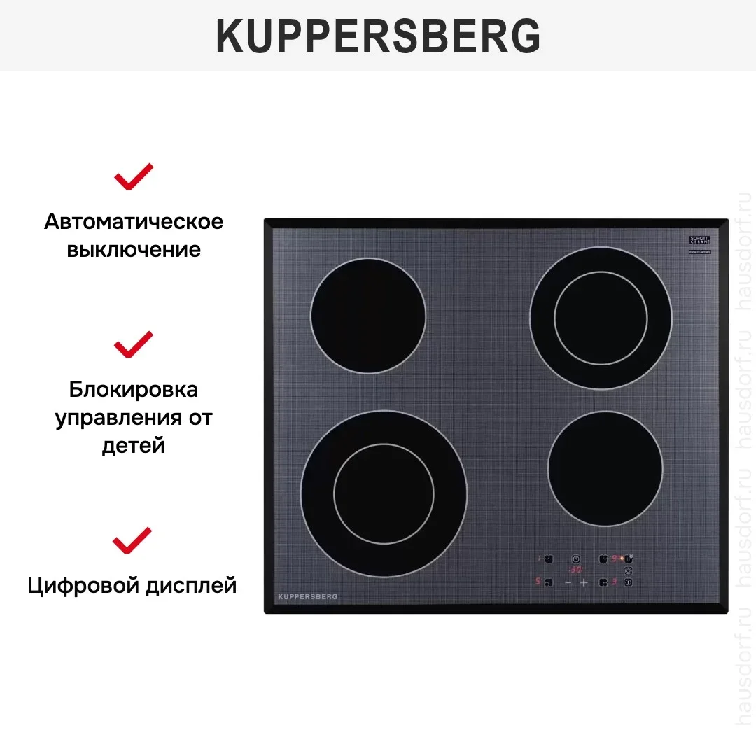Данная модель Kuppersberg под конфорками имеет специальные катушки нагрева Hi-Light. В отличие от стандартного электрического нагрева данная технология обеспечивает более быструю работу, более точное изменение мощности и, соответственно, температуры — а значит, регулировать и контролировать любое блюдо намного проще.
