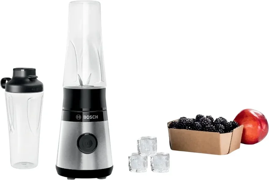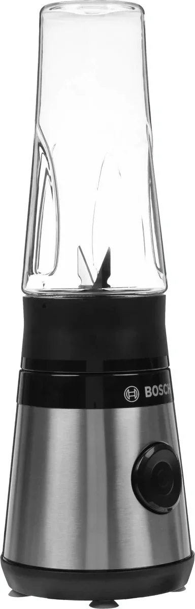 Стационарный блендер Bosch позволяет готовить смузи, коктейли, смешивать соусы и заправки, измельчать продукты до состояния пюре и многое другое. Его конструкция подразумевает автономную работу — вам нужно только положить овощи или фрукты и выбрать режим. Корпус сделан в основном из металла, что повышает надежность прибора. Он может как влиться в общую гамму интерьера, так и стать ярким акцентом; доминирующий цвет — черный. Благодаря специальным нескользящим ножкам блендер сохраняет устойчивость даже на высоких оборотах.