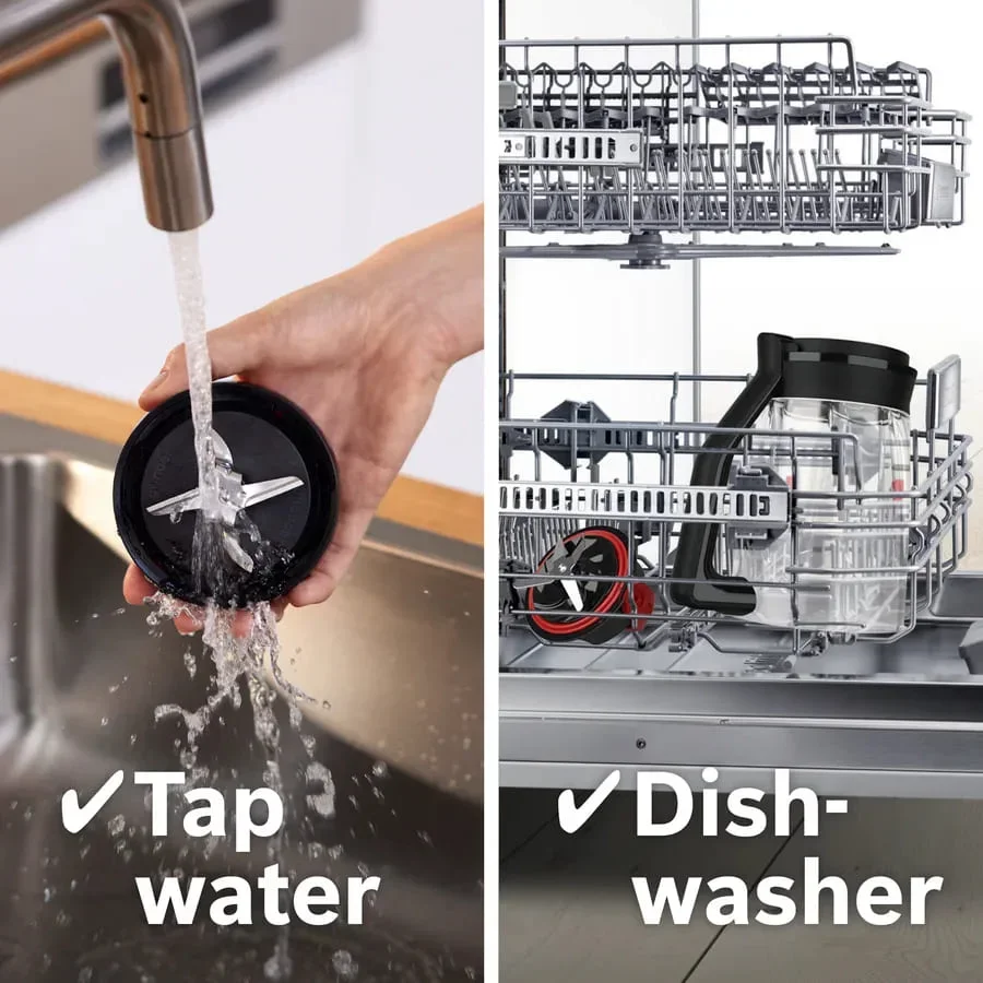 Уход за устройством минимален: достаточно промыть чашу и лезвия тёплой водой с моющим средством или использовать режим самоочистки. Несмотря на внушительную мощность, прибор работает с умеренным уровнем шума и минимальной вибрацией, обеспечивая комфортную эксплуатацию.