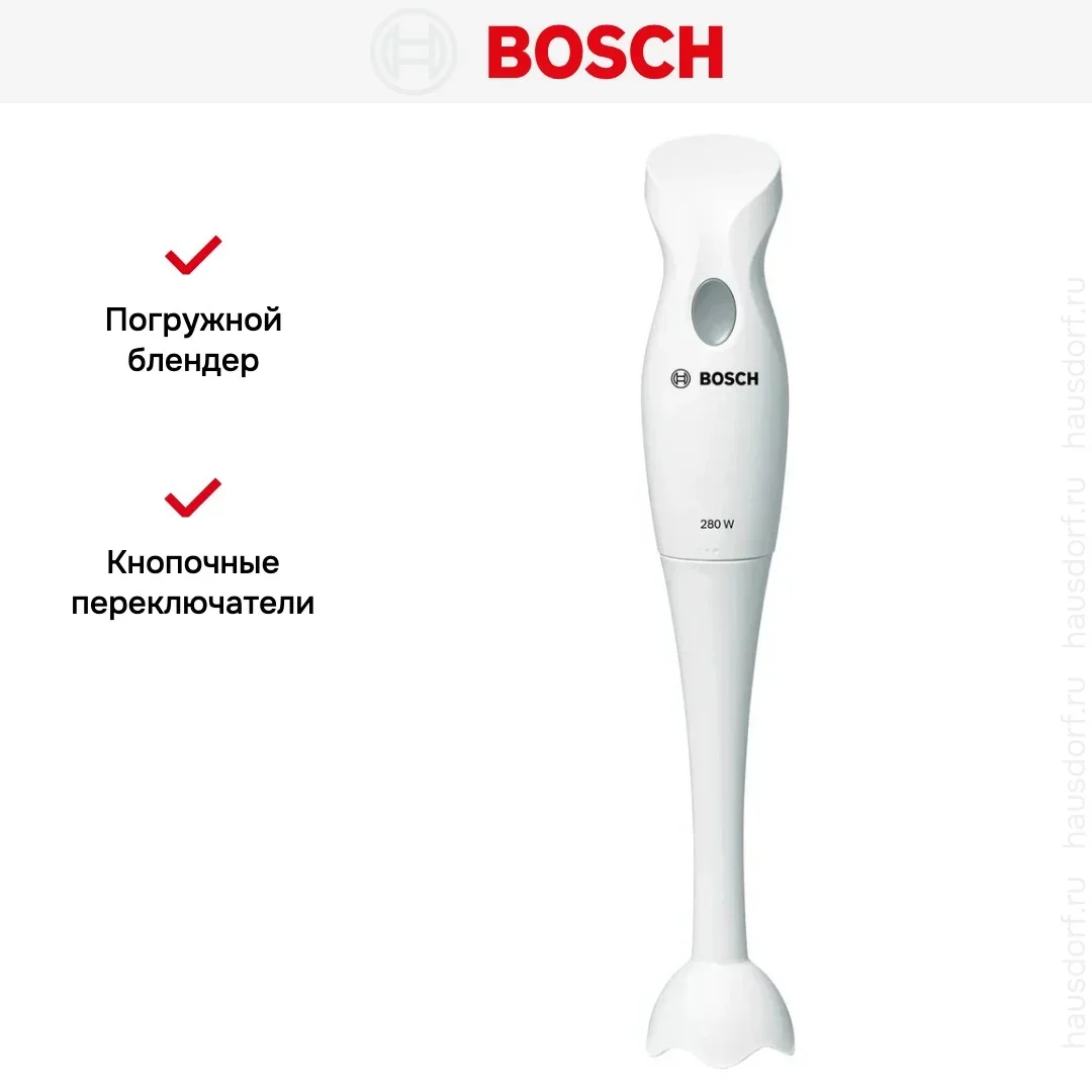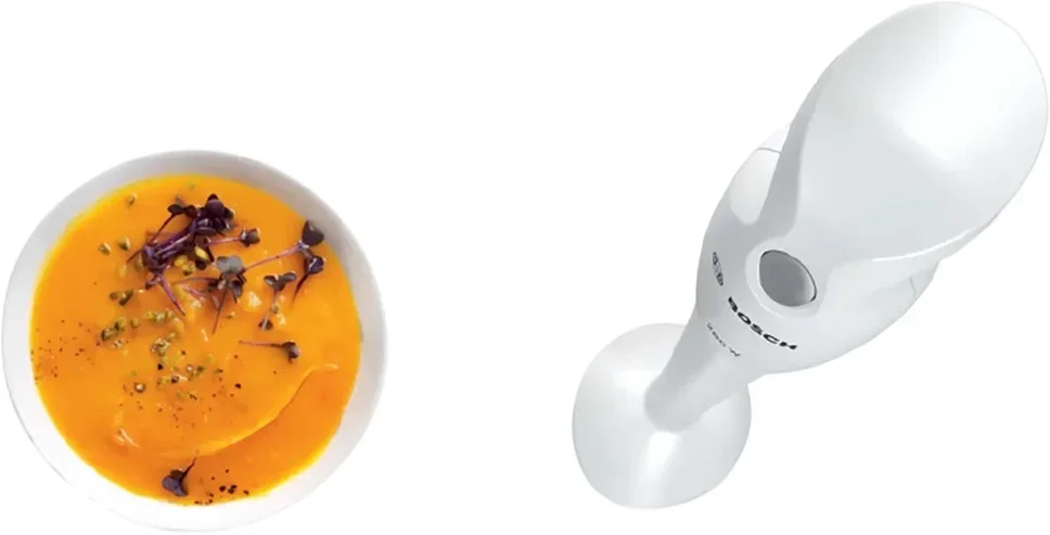 Погружной блендер Bosch MSM6B100 белый — компактный и практичный помощник для ежедневной кухни. Его строгий белый корпус впишется в интерьер любого пространства, а тонкий профиль с габаритами 37.4×6.1×6.1 см позволяет хранить прибор даже в узком шкафчике. Легкий вес 0.5 кг делает устройство удобным для быстрой работы одной рукой и не утомляет при длительных процедурах.
