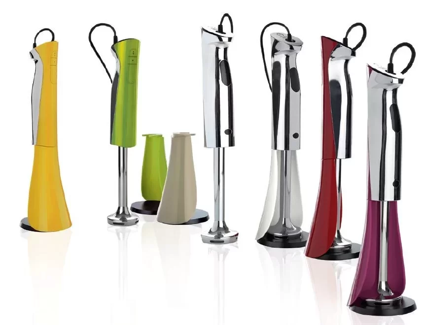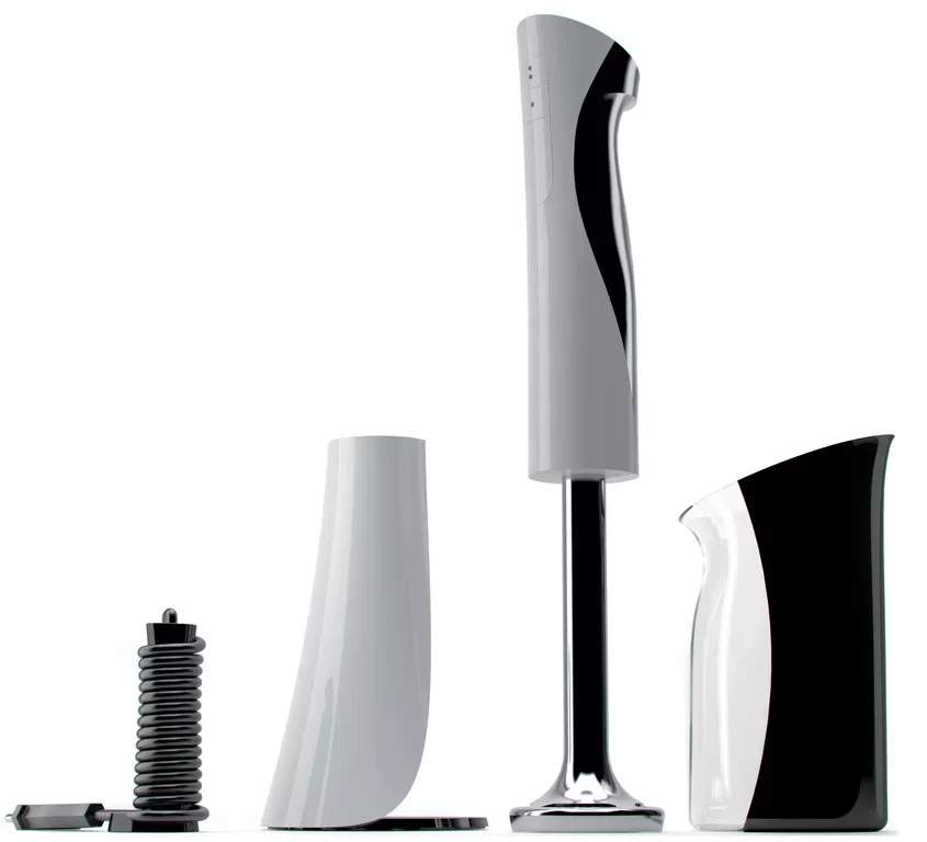 Элегантный погружной блендер в белом цвете от итальянского бренда. Модель оснащена системой анти-брызг, двумя скоростями и микроэлектронными безопасными включателями. Набор комплектуется емкостью для взбивания, съемным шнуром с подставкой и базой для блендера.