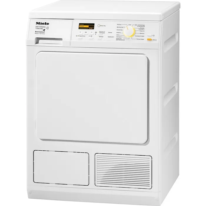 Сушильная машина Miele предназначена для домашнего использования, поэтому имеет стандартные габариты и большое разнообразие программ. Так как она устанавливается отдельно, нужно заранее найти достаточно места в помещении.