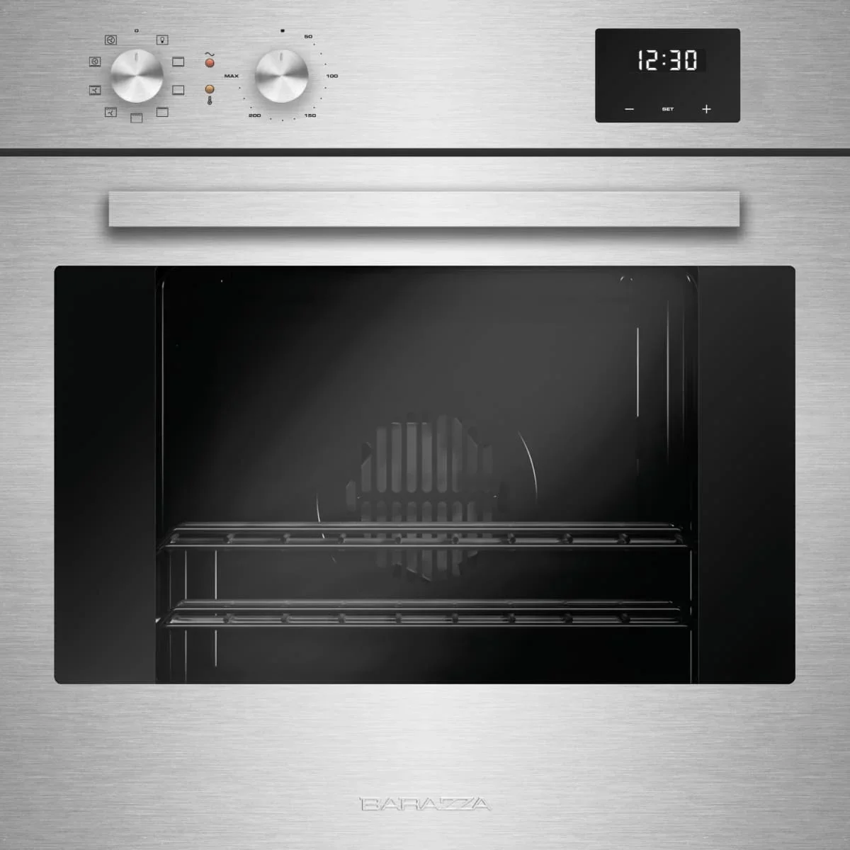 Духовой шкаф Barazza 1FOAP — это элегантное и технологичное устройство, созданное для тех, кто ценит итальянский дизайн, надёжность и инновационные решения на кухне. Модель относится к независимому типу, что позволяет размещать её в любом удобном месте без привязки к варочной поверхности. Подключение осуществляется к электрической сети, что обеспечивает стабильную и безопасную работу. Габариты корпуса составляют 59,6 см в высоту, столько же в ширину и 54,5 см в глубину, что соответствует стандартам встраиваемой техники премиум-класса. Для правильной установки требуется ниша размером 58 × 56 × 55 см, что гарантирует плотное прилегание, эффективную вентиляцию и эстетичный внешний вид после монтажа. Управление осуществляется с помощью сенсорной панели, дополненной поворотными регуляторами и сенсорными кнопками TouchControl, что делает взаимодействие с прибором интуитивно понятным, точным и визуально привлекательным. Такой подход сочетает в себе удобство механической настройки и современные цифровые возможности, обеспечивая полный контроль над процессом приготовления. Благодаря продуманной конструкции и компактным размерам духовка гармонично вписывается в любой интерьер, не нарушая его стилистическую целостность. При этом внутренний объем остается достаточно вместительным для повседневных и праздничных задач. Равномерный нагрев, обеспечиваемый электрической системой, позволяет готовить блюда с идеальной пропеченностью и текстурой. Модель подойдет как для традиционной выпечки, так и для экспериментов с новыми кулинарными техниками. Надежная сборка, качественные компоненты и внимание к деталям делают этот прибор долговечным и практичным в повседневной эксплуатации. Он станет не просто техникой, а стильным элементом кухонного пространства, подчёркивающим вкус владельца. Выбирая эту модель, вы получаете сочетание итальянской эстетики, передовых технологий и функциональности, способное удовлетворить даже самых взыскательных гурманов.