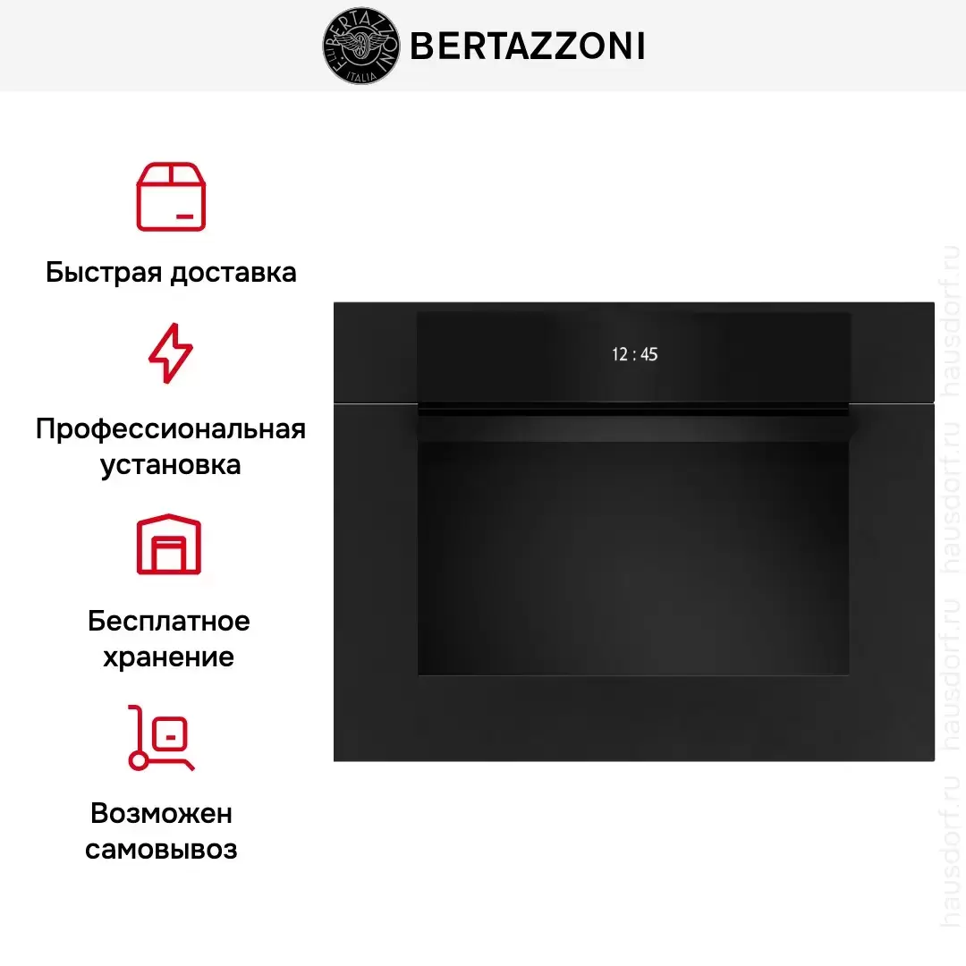 Bertazzoni F457MODMWTN — духовой шкаф с функцией микроволновой печи объемом 38 л. Управляется с помощью полностью сенсорного TFT-дисплея. Двуслойное стекло в дверце обеспечивает безопасность эксплуатации, дверь закрывается и открывается плавно благодаря доводчику. Предусмотрено 15 автоматических предустановленных режимов.