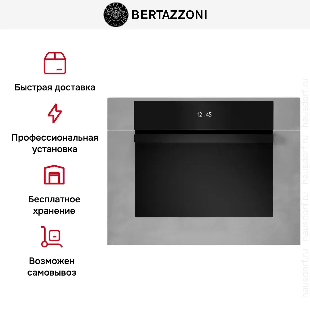 Bertazzoni F457MODVTZ — электрический духовой шкаф объемом 31 л. Функция пара Total Steam позволяет быстро приготовить полезную пищу. Управляется с помощью полностью сенсорного TFT-дисплея. Дверь плавно открывается и закрывается благодаря доводчику. Имеет ряд специальных функций: расстойка теста, размораживание, разогрев, сушка, стерилизация.