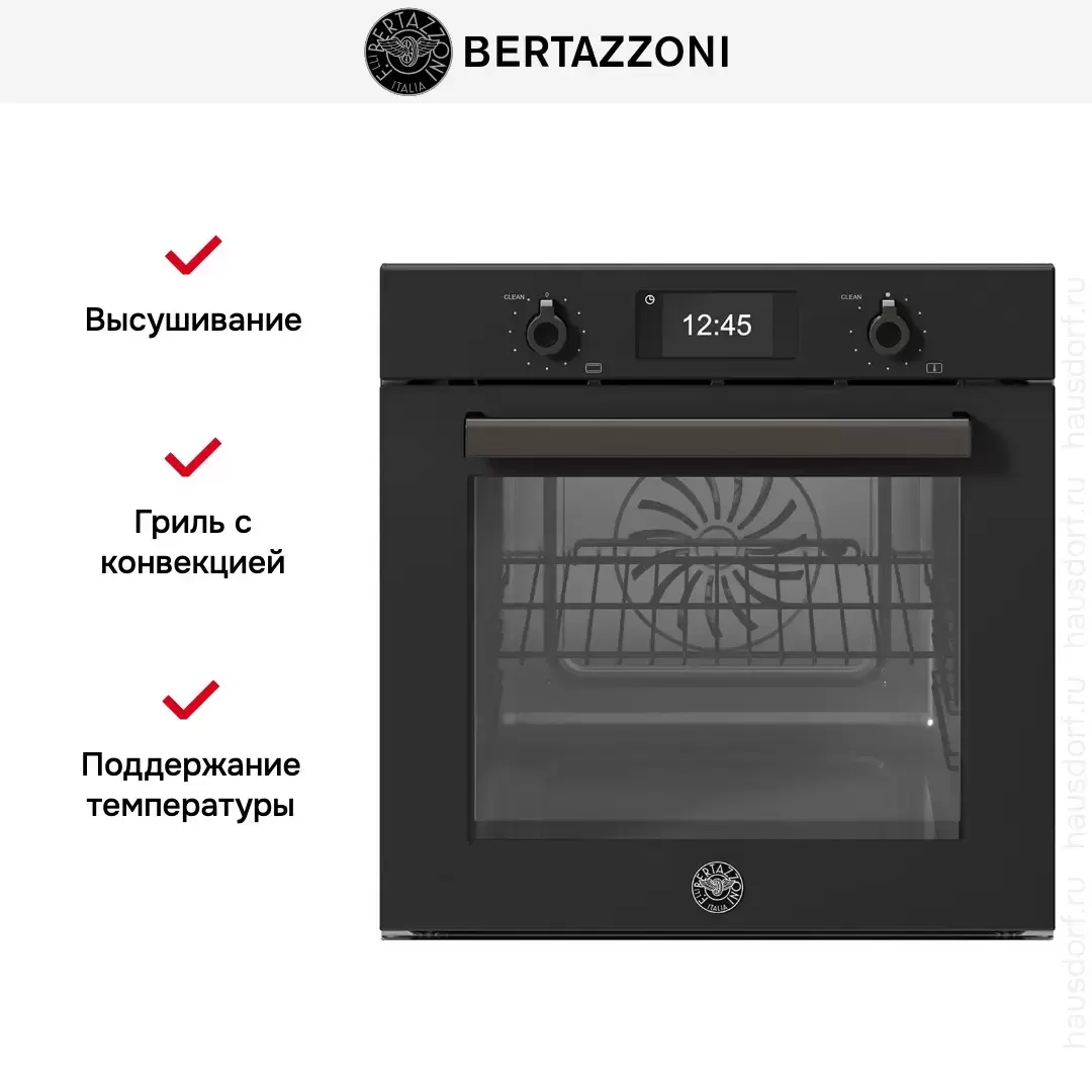 Духовой шкаф Bertazzoni F6011PROPTN-23 сочетает профессиональный внешний вид и технические возможности для стабильной работы на кухне. Он независимый, электрический и рассчитан на встраивание в нишу с типовыми размерами, что облегчает установку в стандартный кухонный гарнитур.