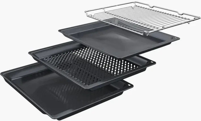Количество режимов работы в духовом шкафу Бош: 8. В число доступных программ входят: классический нагрев, нижний нагрев, конвекция, гриль для создания хрустящей корочки, пицца, и другие. Помимо основных программ воспользуйтесь специальными возможностями этого прибора: размораживанием продуктов, чтобы сократить время на подготовку; быстрым разогревом для ускорения работы; и другими. Тип гриля в этой модели — электрический.