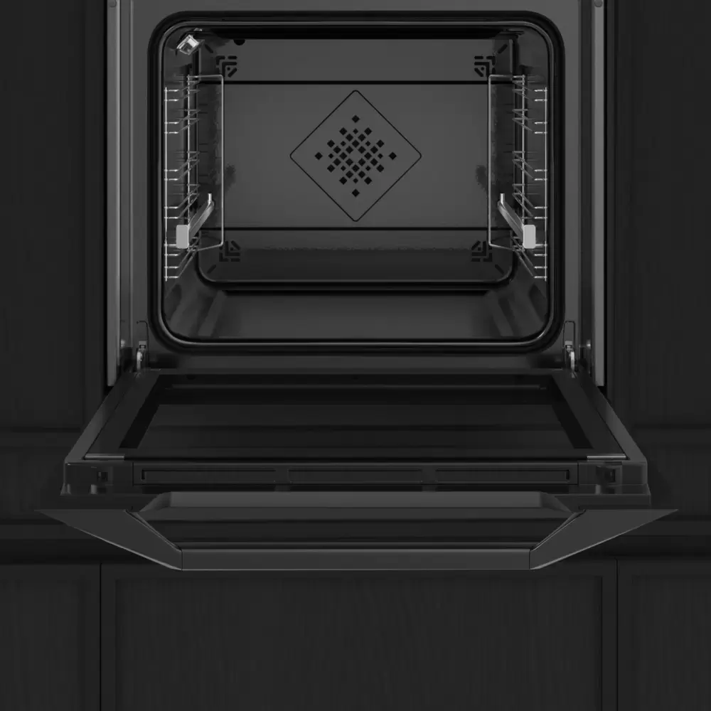 Особенности дизайна и внешней панели управления — также важный пункт при выборе духовки на кухню. В данной модели нужно обратить внимание на цвет — черный,