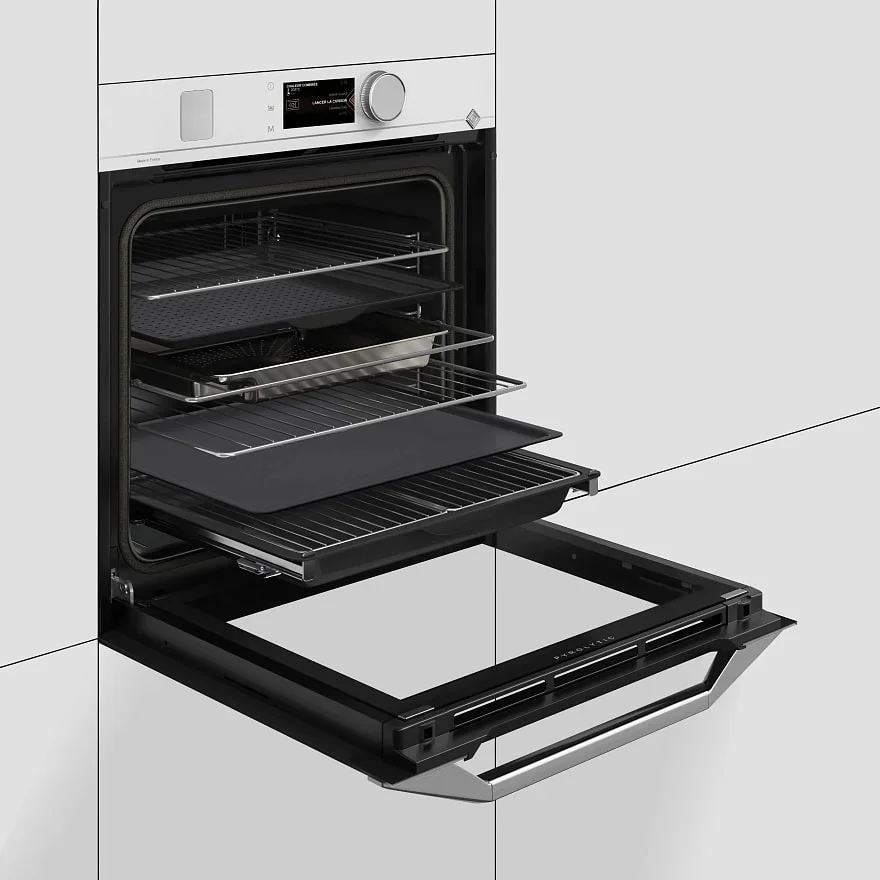Удобство управления подкреплено таймером и функцией отсрочки включения, что позволяет планировать процесс заранее. Пиролитическая очистка превращает остатки пищи в золу при высокой температуре, после чего их легко убрать влажной губкой; при этом дверца блокируется ради безопасности. Холодная внешняя поверхность двери, эффективная вентиляция и система охлаждения защищают кухонный гарнитур и пользователя при интенсивной эксплуатации.