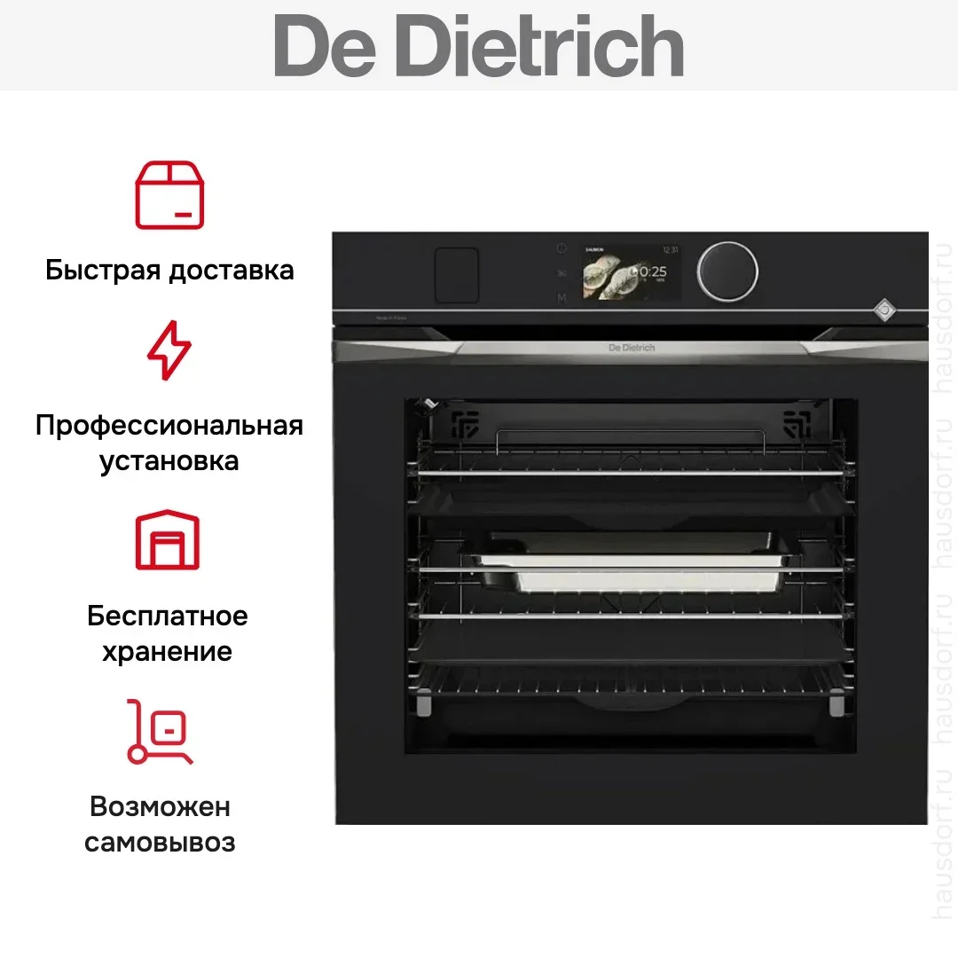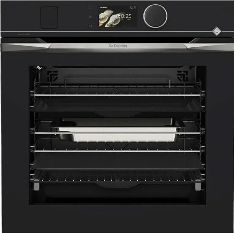 Духовой шкаф De Dietrich DOR4747X — элегантное сочетание современного стиля и профессиональных кулинарных возможностей для дома. Его оформление в черном цвете удачно вписывается в минималистичные и классические интерьеры. Для управления предусмотрены сенсорные кнопки, большой поворотный регулятор и цветной TFT-дисплей. Это обеспечивает простоту и наглядность при настройке параметров работы.