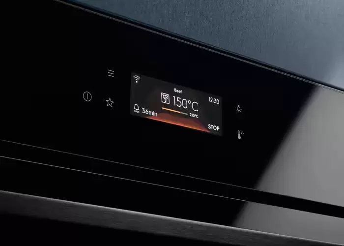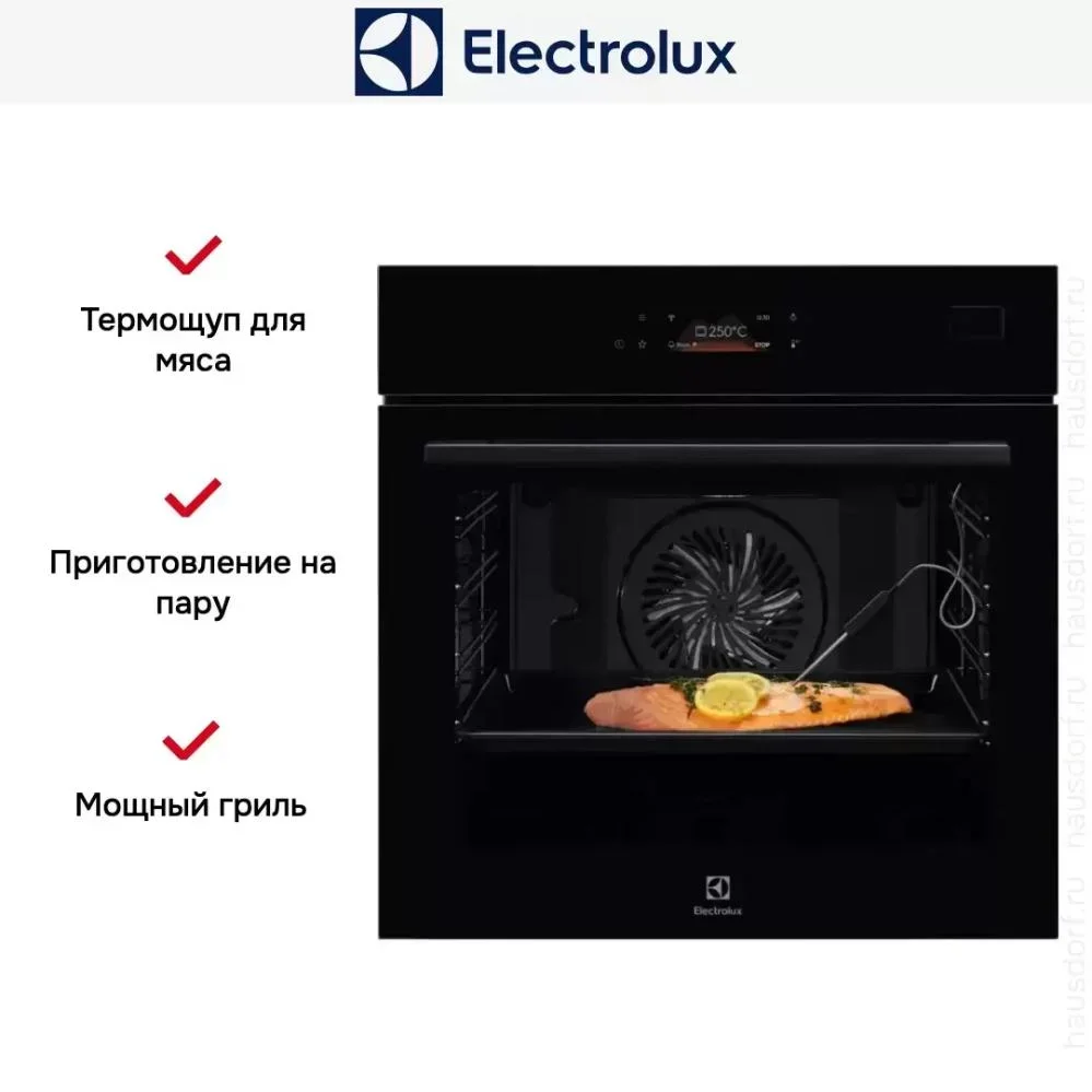 Духовой шкаф Electrolux EOB8S39WZ — независимая электрическая модель в строгом черном оформлении с продуманной эргономикой и набором режимов для дома и гастрономических экспериментов. Его внешность лаконична: матовая фасадная панель сочетается с крупным цифровым дисплеем и сенсорной панелью управления, что упрощает настройку и сохраняет аккуратный вид кухни. Откидная дверь с двойным стеклопакетом надежно удерживает тепло, а тангенциальная система охлаждения защищает встроенную мебель от перегрева. Ориентируясь на стандартные ниши, прибор занимает 59.4×59.5×56.7 см, а для встраивания достаточно проема 57.8—59×56×55 см.