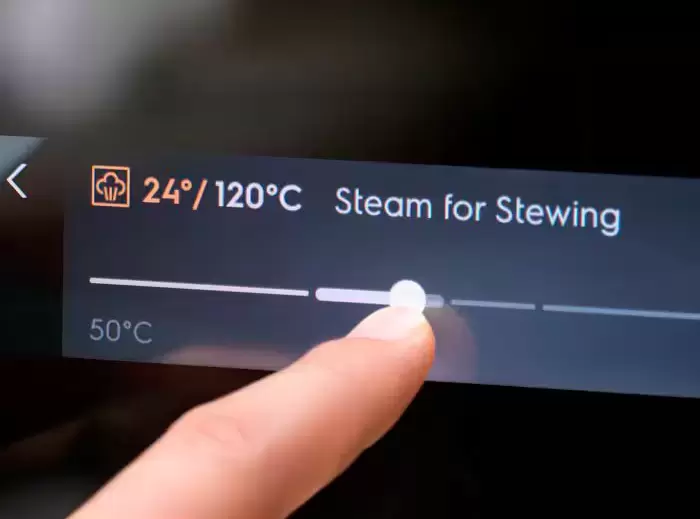 Внутренний объем 70 литров позволяет готовить на пяти уровнях одновременно, что удобно при семейных приемах и праздничных застольях. Набор из 22 рабочих режимов охватывает выпечку, пиццу, запеканки, консервацию, сушку и низкотемпературное приготовление, а также классические верхний/нижний нагрев и горячий воздух. Для любителей хрустящей корочки предусмотрен турбогриль, а комбинированные режимы с влажной конвекцией и функцией Steamify расширяют гастрономические возможности. Режимы PureSteam и интенсивный пар позволяют готовить на 100% пару, чтобы сохранить сочность блюд и текстуру выпечки.