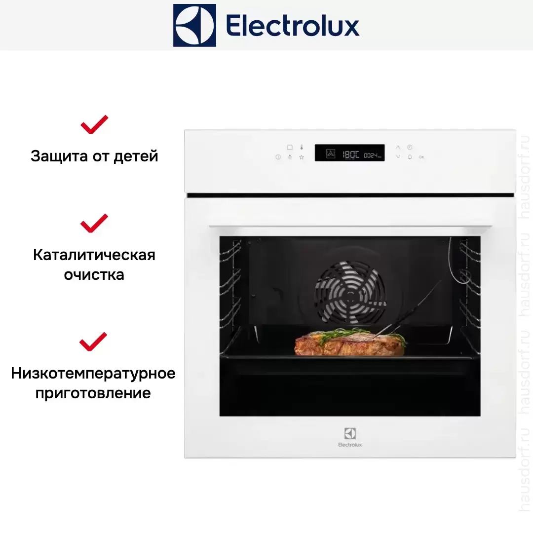 Готовьте свои лучшие блюда и пробуйте новые рецепты с духовым шкафом Electrolux EOE7C31V! Стандартные размеры и большой объем внутренней камеры — выбор тех, кто много готовит для семьи или частых праздничных встреч с друзьями. Желательно заранее продумать расположение такой модели в кухонном гарнитуре.