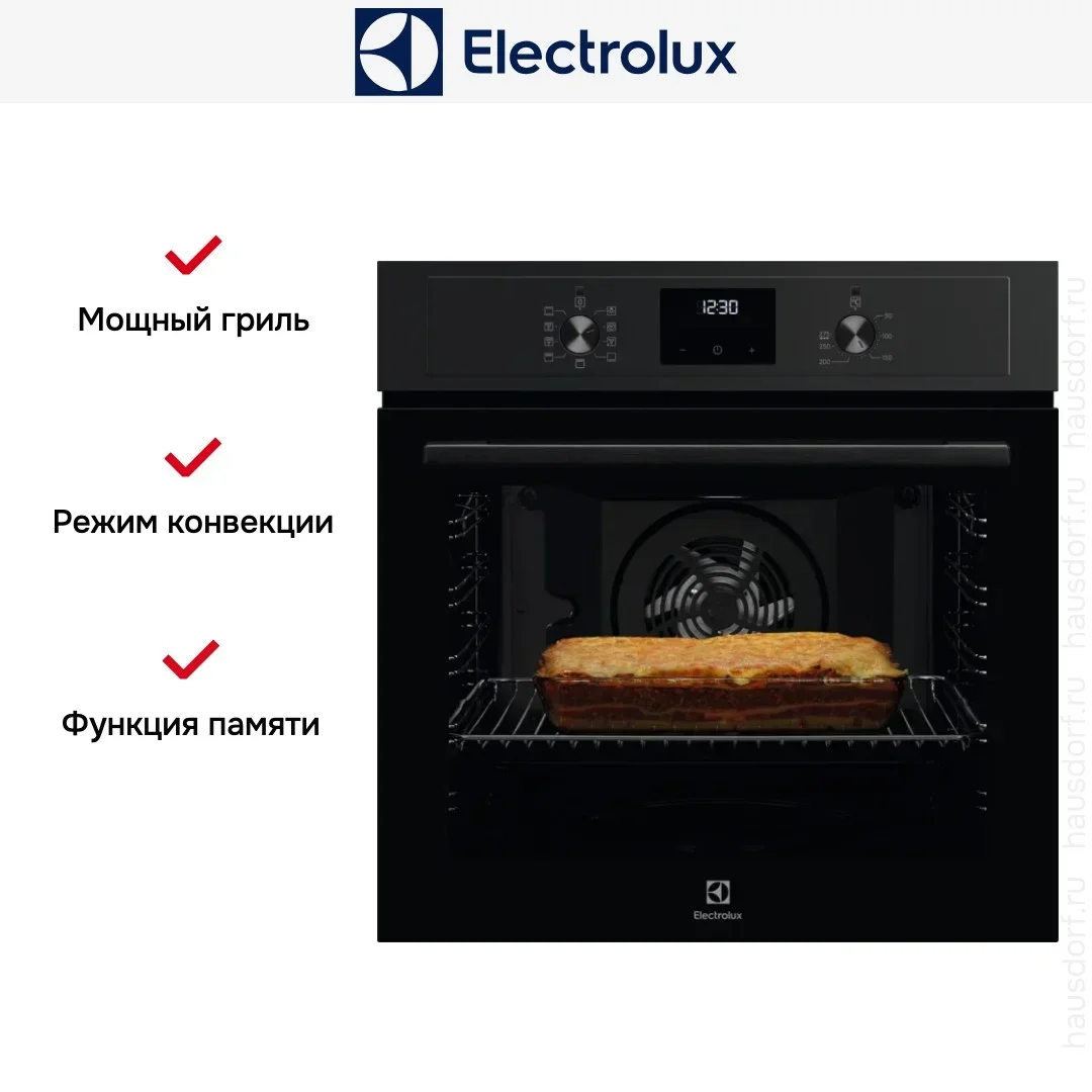 Готовьте свои лучшие блюда и пробуйте новые рецепты с духовым шкафом Electrolux EOF3H40TH! Стандартные размеры и большой объем внутренней камеры — выбор тех, кто много готовит для семьи или частых праздничных встреч с друзьями. Желательно заранее продумать расположение такой модели в кухонном гарнитуре.