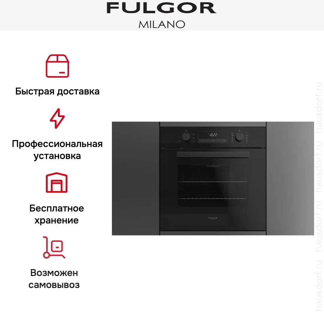 Готовьте свои лучшие блюда и пробуйте новые рецепты с духовым шкафом Fulgor Milano FQO 6009 MT BK! Стандартные размеры и большой объем внутренней камеры — выбор тех, кто много готовит для семьи или частых праздничных встреч с друзьями. Желательно заранее продумать расположение такой модели в кухонном гарнитуре.