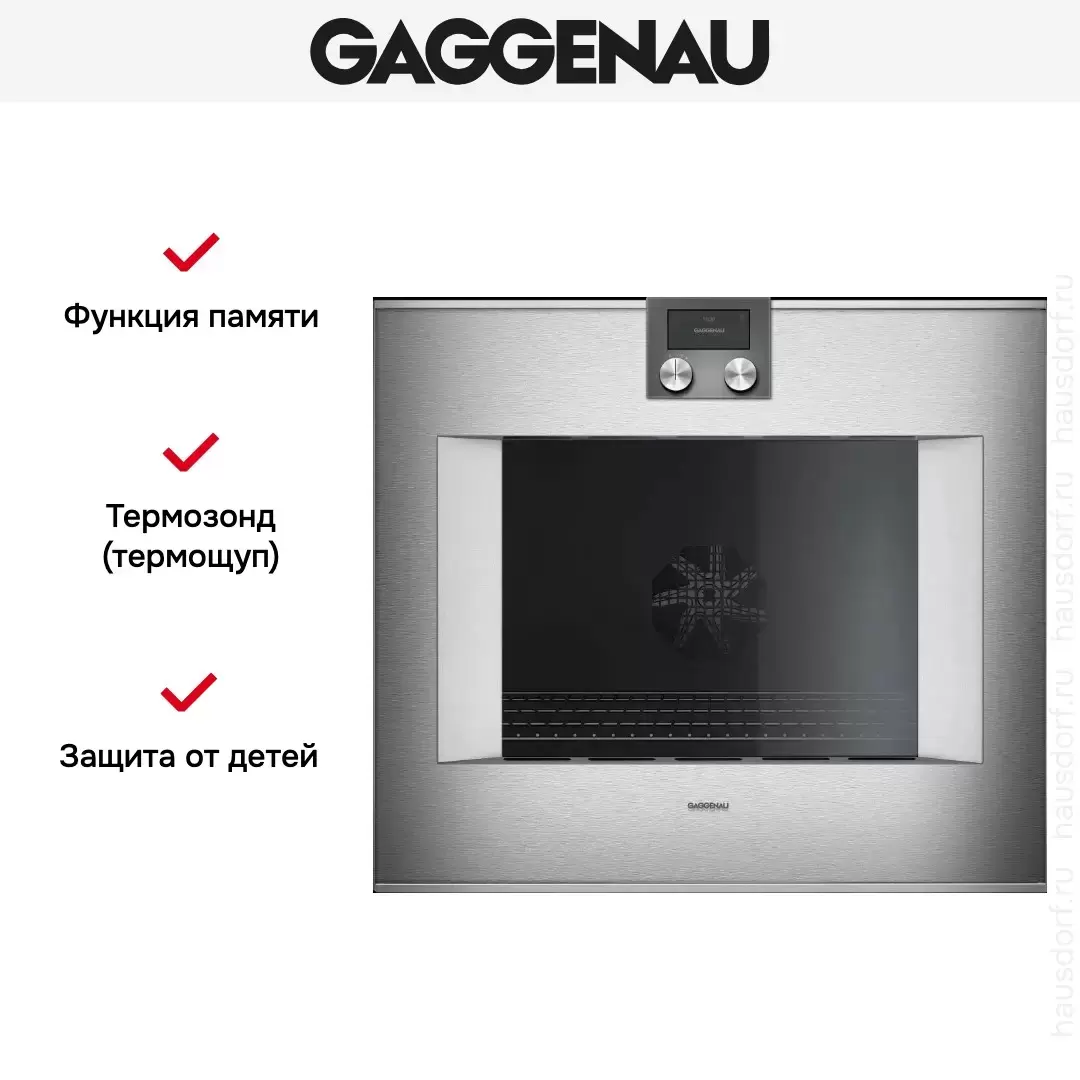 Духовой шкаф Gaggenau встраивается в нишу, дверь открывается слева, не перенавешивается. Работает в 17 режимах нагрева, которые можно использовать отдельно и комбинировать. 40 автоматических программ и возможность сохранить любимые рецепты превращают готовку в настоящее искусство. Пиролитическая очистка облегчает уход за техникой и быстро избавляет от жира и остатков пищи в камере.