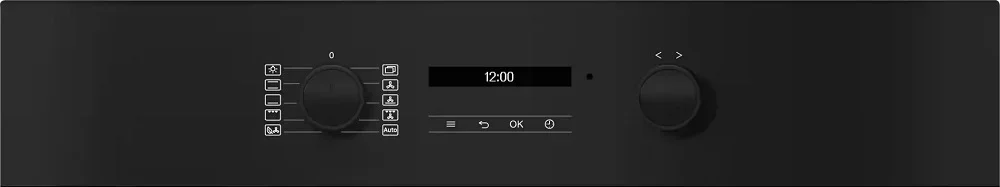 Особенности дизайна и внешней панели управления — также важный пункт при выборе духовки на кухню. В данной модели нужно обратить внимание на цвет — черный обсидиан, охлаждение двери, чтобы поверхность и мебель вокруг не нагревались.