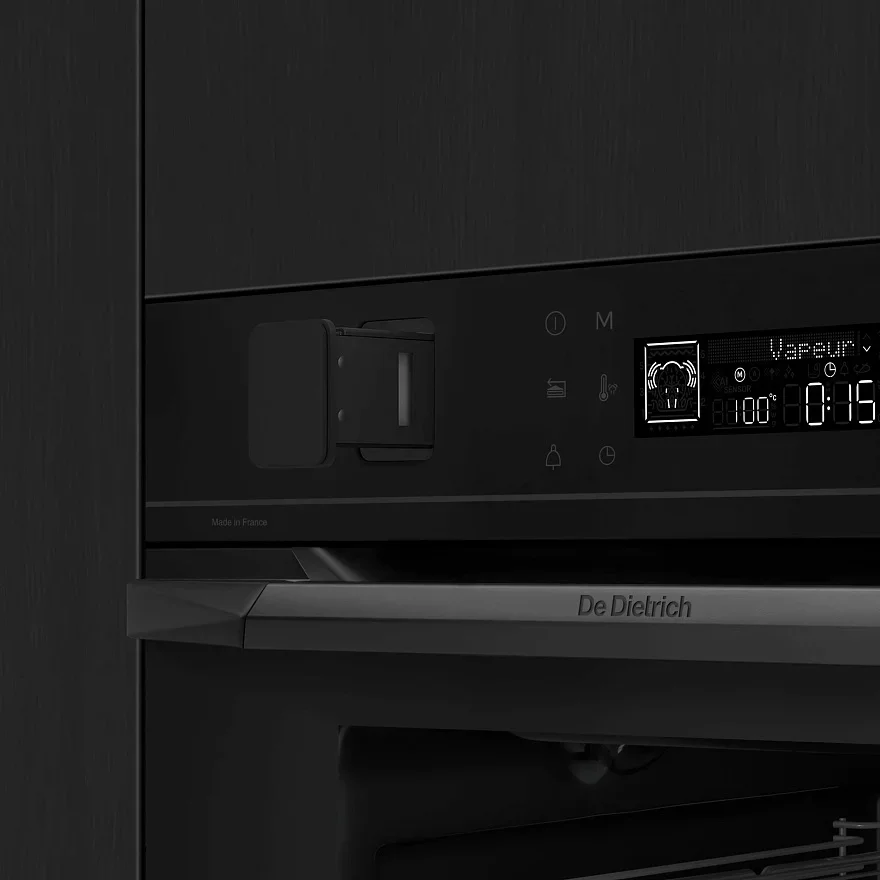 Духовой шкаф De Dietrich DOR4546BE обладает стильным внешним видом и продуманной эргономикой, которые легко впишутся в современную кухню. В исполнении Philharmonie корпус и фасад окрашены в благородный черный цвет, а аккуратная ручка и матовая фурнитура создают цельный и строгий облик. Габариты прибора рассчитаны на стандартную нишу для встраивания 58.5×56×54.5 см, что облегчает монтаж и планирование кухни. Четырехслойная дверца с системой холодного стекла и мягким доводчиком гарантирует безопасное и тихое закрытие, а съемное внутреннее стекло упрощает уход.