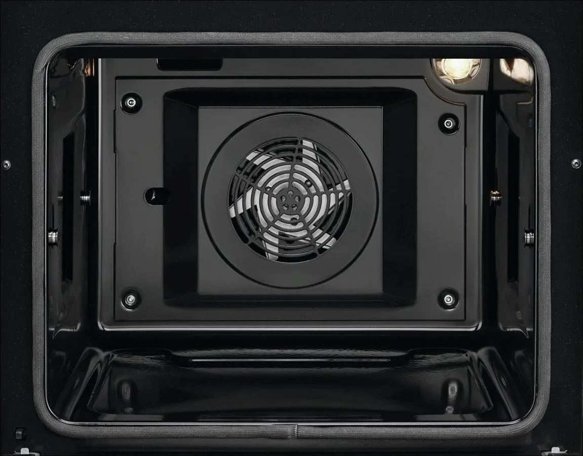 Панель управления сочетает механические элементы и сенсорные зоны, что повышает удобство и надежность. Есть электронный дисплей и часы, а также электронный таймер для контроля времени приготовления. Утапливаемые поворотные переключатели предотвращают случайное включение и упрощают очистку панели. Сенсорные элементы делают выбор режимов интуитивным, а механика обеспечивает долговечность.