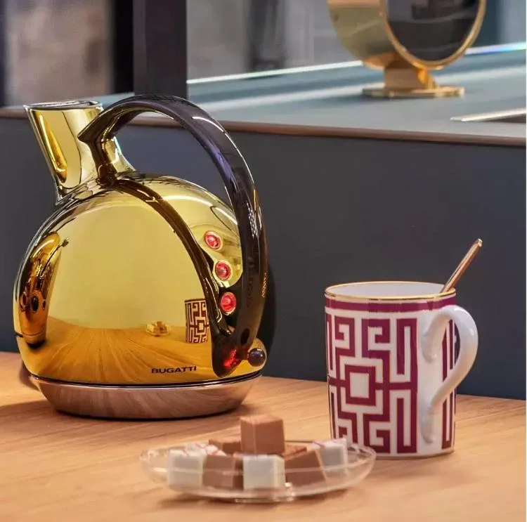 Электрочайник Bugatti Giulietta — это истинное воплощение качества, функциональности и элегантности. Золотистый цвет корпуса, выполненного из нержавеющей стали, придает этому устройству особый шик и блеск, делая его не только удобным инструментом на вашей кухне, но и стильным элементом декора.
