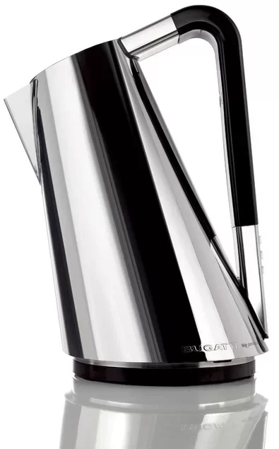Стильный электрический чайник от Bugatti. Модель с удобной подставкой с центральным контактом — вы можете поворачивать чайник на 360 градусов и ставить на базу из любого положения.