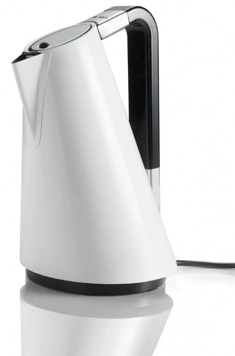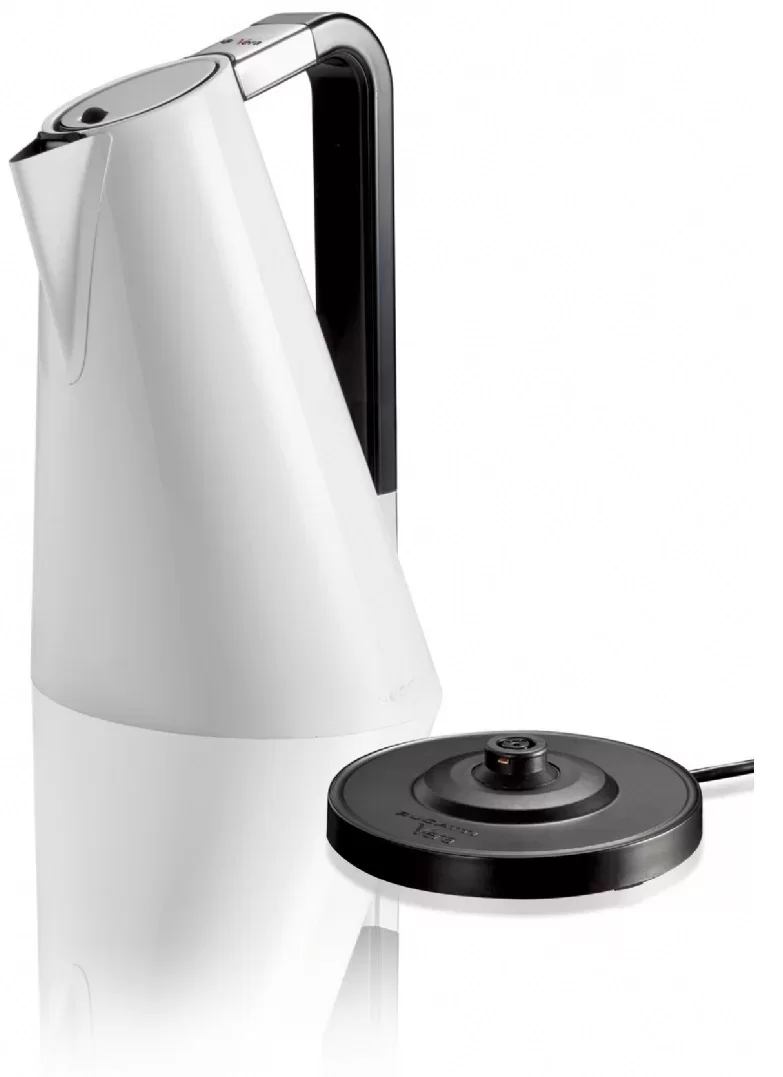 Лаконичный и функциональный электрический чайник в белом цвете. Модель с удобной подставкой с центральным контактом — вы можете поворачивать чайник на 360 градусов и ставить на базу из любого положения.