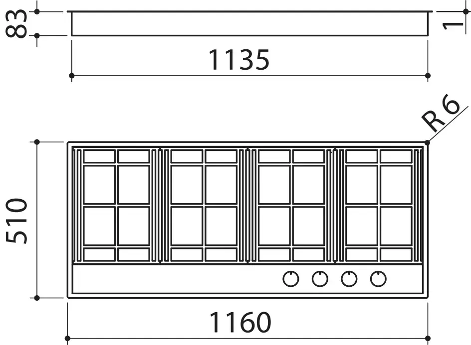 Специальная конструкция горелок Eco-Design позволяет получить вертикальное пламя, которое снижает потребление энергии и гарантирует равномерный нагрев. На варочной панели расположены конфорка «Двойная корона» с 2 рядами пламени, быстрая конфорка мощностью 3 кВт, стандартная и вспомогательная конфорки. Механическая панель управления оснащена поворотными переключателями с плоскими ручками. Чтобы зажечь пламя, используется электроподжиг, а для защиты от утечки газа служит система «газ-контроль».