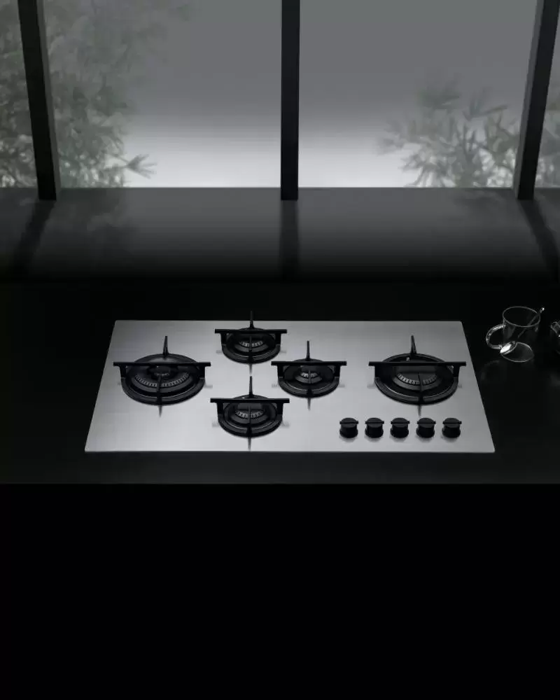 Варочная панель с пятью конфорками — это разнообразие уровней мощности, подходящих для объемной и маленькой посуды. В данной модели есть горелка с двумя рядами пламени, которая позволяет добиться максимальной силы и скорости нагрева. Пламя распределяется по контуру конфорки равномерно и безопасно, плоские крышки помогают в этом.