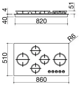 Варочная панель оснащена оригинальными плоскими конфорками Eco-Design, в том числе конфоркой «Двойная корона» мощностью 4 кВт с двумя контурами пламени, быстрой конфоркой мощностью 3 кВт, двумя стандартными и вспомогательной конфорками. Механическая панель управления с поворотными переключателями служит для плавной регулировки пламени, а для того, чтобы зажечь конфорки, предусмотрен автоматический электроподжиг. Безопасность в работе гарантирует система «газ-контроль», прекращающая подачу газа, как только пламя гаснет.