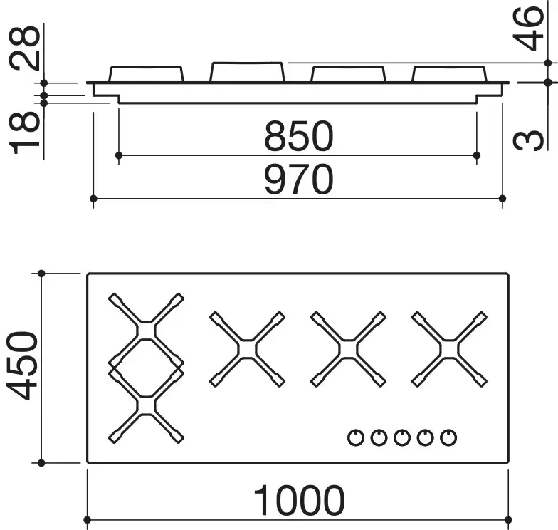 Посуда устойчиво размещается на раздельных чугунных решетках. Материал изготовления варочной поверхности — очень толстая нержавеющая сталь AISI 304. Для включения горелок без зажигалок или спичек предусмотрен электроподжиг. На каждой горелке установлена термопара для блокировки подачи газа при угасании пламени.