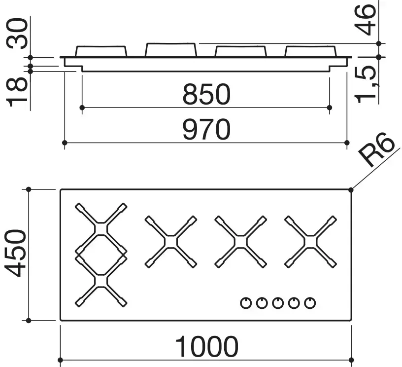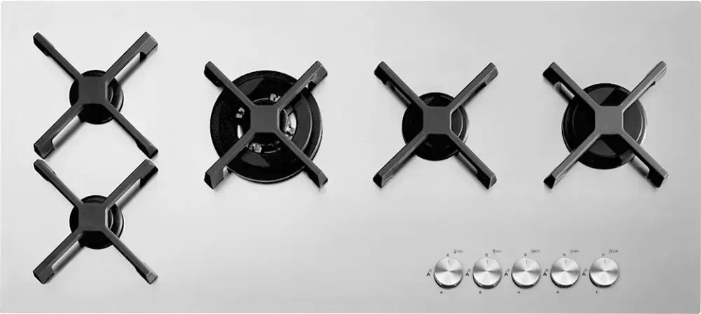 Поверхность изготовлена из особо толстой нержавеющей стали марки AISI 304. Раздельные решетки для размещения посуду выполнены из чугуна. Для включения горелок служит электроподжиг. Безопасность использования гарантируют термопары на каждой горелке: они блокируют подачу газа, как только пламя гаснет.
