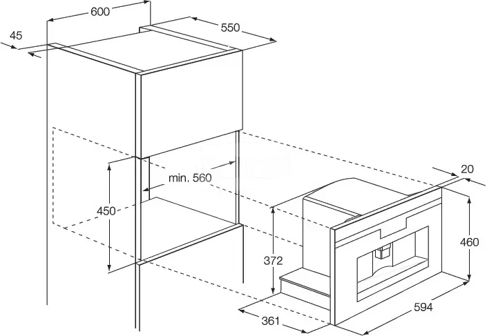| Габариты ниши для встраивания (см) (ШхВхГ) | 56 x 45 x 55 | |
