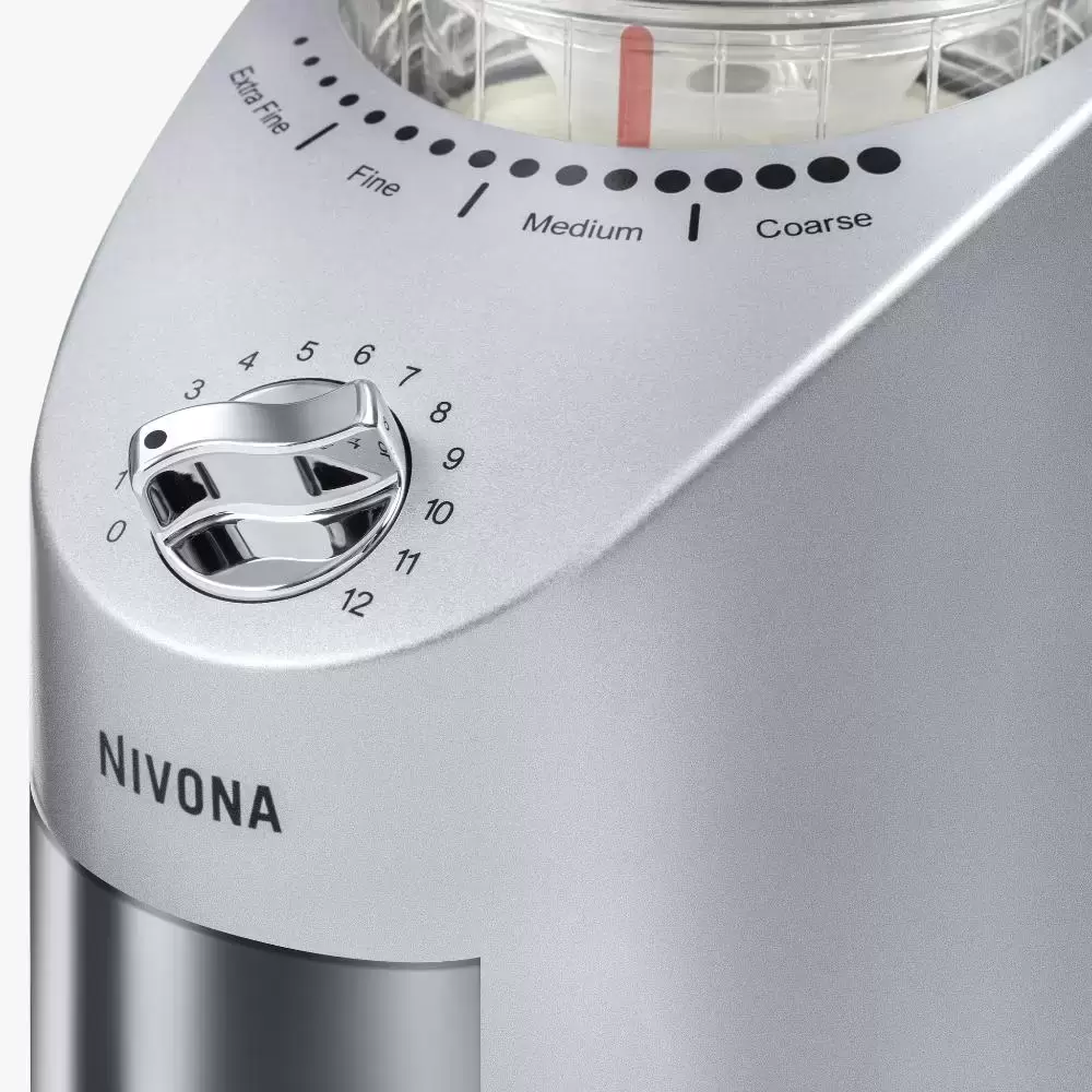 Данная модель Nivona подойдет любителям разного кофе — от очень легкого до суперкрепкого. Благодаря многоступенчатной шкале режимов вы можете настраивать помол под любой запрос. С помощью поворотного регулятора на фронтальной стороне прибора выбирайте время и количество измельченного кофе. За один раз можно приготовить объем на несколько человек.