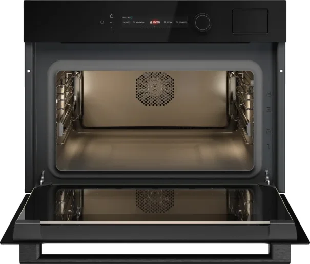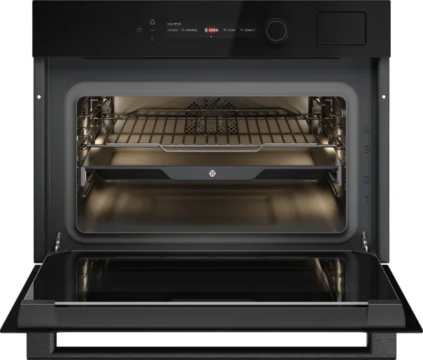 Компактный духовой шкаф ASKO OCS54BGH — стильный встраиваемый электрический прибор, который сочетает современный дизайн NYACraft Glass Series 5 с продуманной эргономикой и широким набором профессиональных функций. Аппарат с черным стеклом и откидной дверцей оснащен ручкой с фирменным логотипом и четырехслойным стеклопакетом UltraCoolDoorQuadro+, что обеспечивает безопасную эксплуатацию за счет холодной поверхности при интенсивном нагреве. Внутренняя камера объемом 51 литр покрыта пиролитической эмалью для удобной очистки, а галогенное освещение гарантирует отличную видимость готовых блюд на всех трех уровнях. Габариты 45.8×59.4×56.4 см и рекомендации по встраиванию 45—45.5×56×55 см делают прибор идеальным решением для компактной кухни, где важны и вместительность, и экономия места. Управление реализовано через цветной TFT-дисплей с сенсорными кнопками и поворотными регуляторами с подсветкой, поддерживается подключение к мобильному приложению ConnectLife.TRIR; диапазон регулировки температуры 30-250 °C, питание 220-240 В, частота 50-60 Гц. Продуктивность и удобство гарантируют 10 основных режимов работы и 123 автоматические программы, включая классический верхний/нижний нагрев, только нижний элемент, конвекцию, режим консервирования и автоматический шеф-режим. Широкий набор опций для работы с паром включает три программы паровой обработки, ступенчатое приготовление и комбинированные циклы (нагрев снизу + сверху + пар, вентиляционный нагрев + пар, нагрев сверху + снизу + вентилятор + пар), а также функция 100% пара, интенсивный, нормальный и малый пар для точного контроля текстуры и сочности. Гриль электрический большой площади дает возможность получить хрустящую корочку, в том числе в сочетании с обдувом, а аэрогриль/аэрофритюр расширяет гастрономические возможности. Среди полезных сервисных режимов — быстрый разогрев, поддержание температуры блюд, разогрев и стерилизация, режим ECO и шаббат, плюс калибровка термопоказателей для стабильного результата. Устройство комплектуется телескопическими направляющими (1-уровневыми), решеткой, термощупом и двумя противнями; наличие трех уровней для противней и навесных съемных телескопических направляющих обеспечивает безопасную загрузку и удобство в процессе готовки. Для паровых операций предусмотрен съемный резервуар объемом 1,2 л, а режим паровой очистки упрощает уход за камерой. Энергоэффективность класса A++ вместе с максимальной температурой 250 °C и массой 34,8 кг делают этот агрегат экономичным и устойчивым решением на каждый день; длина сетевого кабеля 200 см упрощает подключение на кухне. Артикул 744546 подтверждает комплектность и сервисную идентификацию модели.