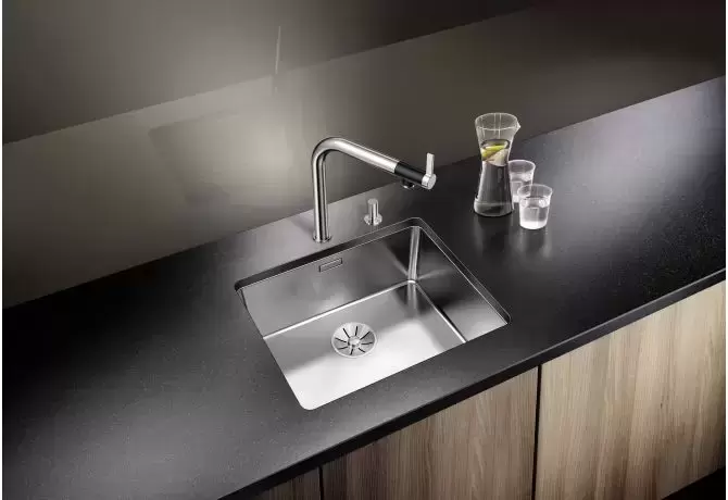 Blanco Andano 400-U — стильная мойка из нержавеющей стали от Blanco, которая гармонично дополнит интерьер кухонного пространства. Для производства используется гигиеничная нержавеющая сталь 18/10 c зеркальной полировкой. Гармоничный дизайн не утратит свою популярность долгие годы. Модель квадратной формы из коллекции Andano устанавливается под столешницу. Такой тип монтажа считается наиболее гигиеничным, так как позволяет обойтись без стыков и швов, где скапливается грязь. Поддержанию чистоты служат и скругленные углы мойки. Все изделия из этой коллекции отличаются увеличенной глубиной чаши 19 см. В ней можно без труда вымыть объемную посуду, обработать продукты большого размера. Хромоникелевая сталь толщиной 0,9 мм сохраняет блеск и прочность даже при воздействии высоких температур и химически активных веществ. Ширина 44 см позволит установить мойку в небольшой кухне: для монтажа ее требуется база шириной всего 45 см.
