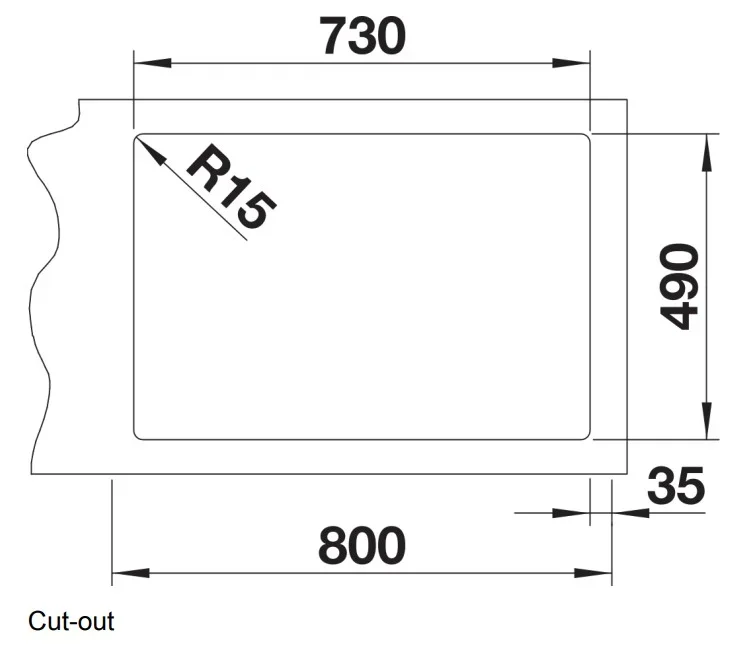 Модель рассчитана на установку над столешницей или вровень с ней, что даёт свободу в дизайне и позволяет выполнить монтаж в стиле «flush» для гладкой поверхности. Необорачиваемая конструкция означает заранее заданное направление расположения чаши и отверстий, поэтому при планировании стоит учитывать ориентацию по месту. Рекомендуемая ширина тумбы — 80 см, а размеры выреза по шаблону — 73×49 см, что упрощает подготовительные работы. В комплекте идут фиксирующие зажимы, которые ускоряют и надёжно фиксируют мойку в столешнице. Радиус скругления шаблона 1,5 см и радиус скругления мойки 1,2 см обеспечивают аккуратный переход между столешницей и бортиком.