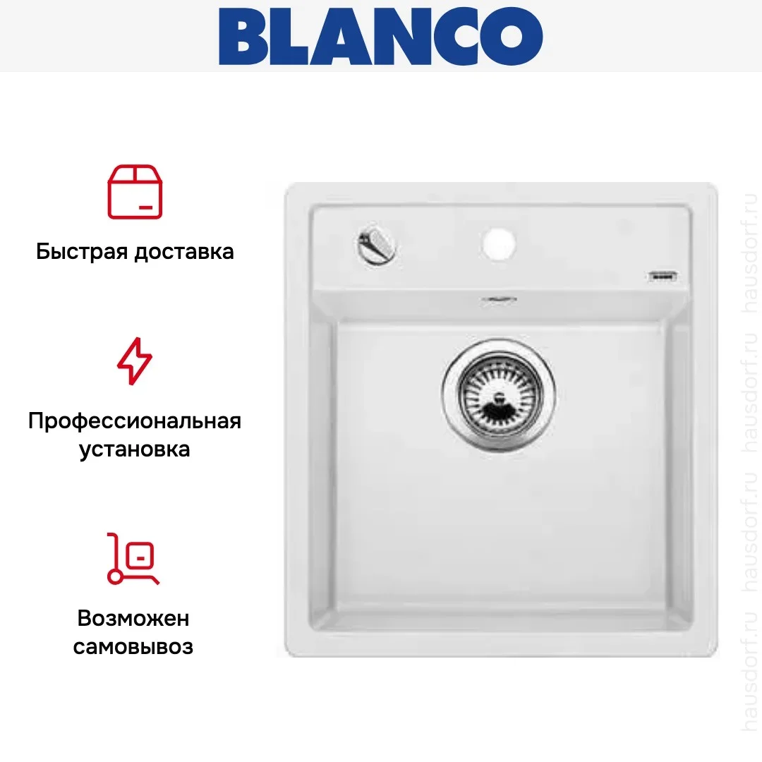 Компактный размер в сочетании с вместительной чашей — отличительная особенность модели. Просторная площадка под смеситель позволяет расположить дополнительные аксессуары или кухонные принадлежности. Поверхность устойчива к пищевым красителям и бытовой химии. Материал Silgranit характеризует высокий уровень гигиены — в структуре композита нет органических соединений. Silgranit не впитывает воду, не меняет цвета под воздействием красящих веществ и обладает доказанными антибактериальными свойствами. Чаша прямоугольной формы глубиной 19 см обеспечивает максимальное удобство при мытье объемной посуды и продуктов. Благодаря скругленным углам ухаживать за ней очень просто. Клапан-автомат с отводной арматурой позволяет начать слив нажатием кнопки на бортике, не опуская руки в воду. Дополнительно можно приобрести разделочную доску из натурального бука. Модель изготавливается на предприятии Blanco в Германии и имеет официальную гарантию производителя сроком на 60 месяцев.