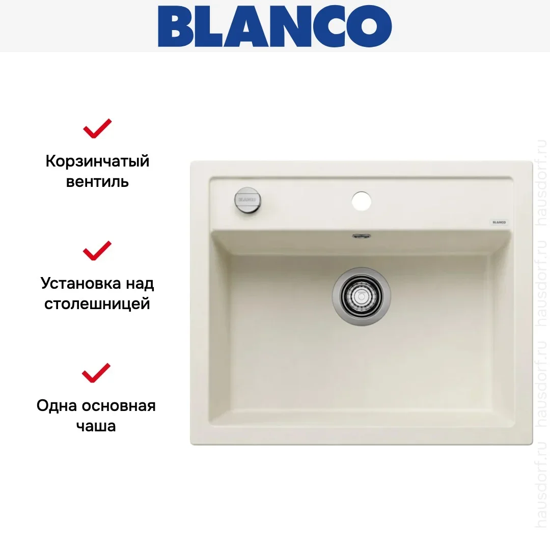 Мойка Blanco Dalago 6 Silgranit — накладная прямоугольная модель в мягком белом оттенке из прочного композитного материала, которая сочетает лаконичный внешний вид и продуманную эргономику. Ее габариты 61,5×51 см делают изделие компактным, но практичным для большинства стандартных кухонных секций.