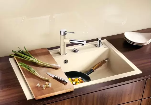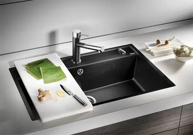 Мойка Blanco Dalago 8 — образец современного стиля. Ее правильная прямоугольная форма отлично сочетается с такими стилями интерьера, как минималистический, хай-тек, скандинавский. Стилевое решение подчеркивают современные материалы. Искусственный гранит Silgranit™ puradur™ II состоит из частичек натурального камня на 80%, благодаря непористой структуре на его поверхности не задерживается ни грязь, ни брызги. Материал способен выдержать температуру до 280?С и устойчив к воздействию химических веществ. Модель выпускается в 10 различных оттенках: от белого и жасминового до цветов «антрацит» и «черная скала».