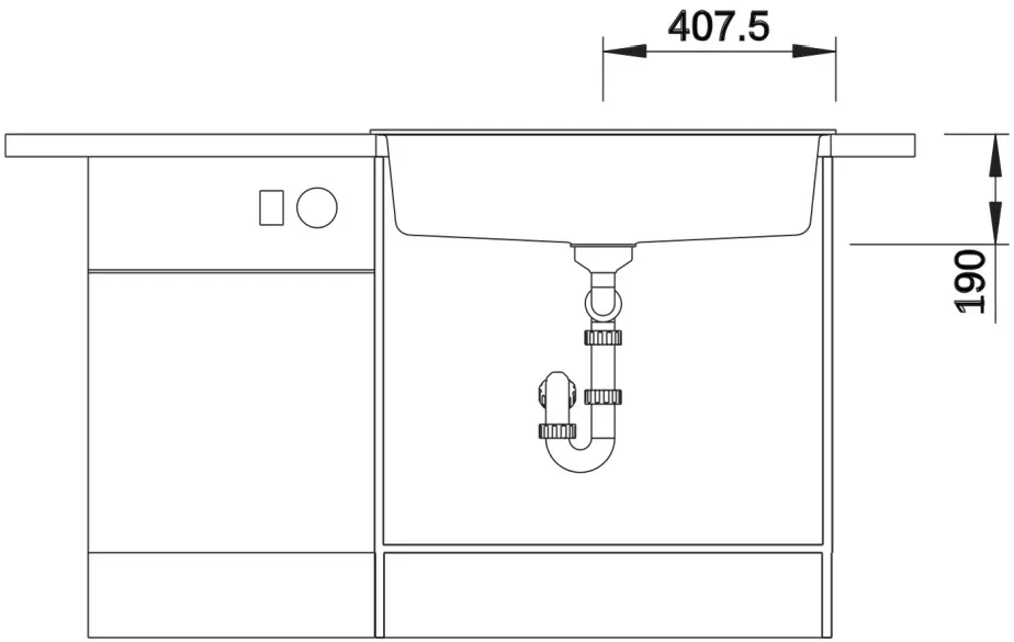 Модель устанавливается над столешницей и рассчитана на базу шириной 80 см, для монтажа требуется вырез 79,5×49 см с радиусом скругления 1,5 см. Необорачиваемая конструкция значит, что ориентация чаши фиксирована, это важно учитывать при планировке рабочей зоны. Встроенный корзинчатый вентиль и клапан-автомат обеспечивают удобное управление сливом: корзинка ловит крупные частицы и предотвращает засоры, а автомат позволяет открывать и закрывать слив без касания.