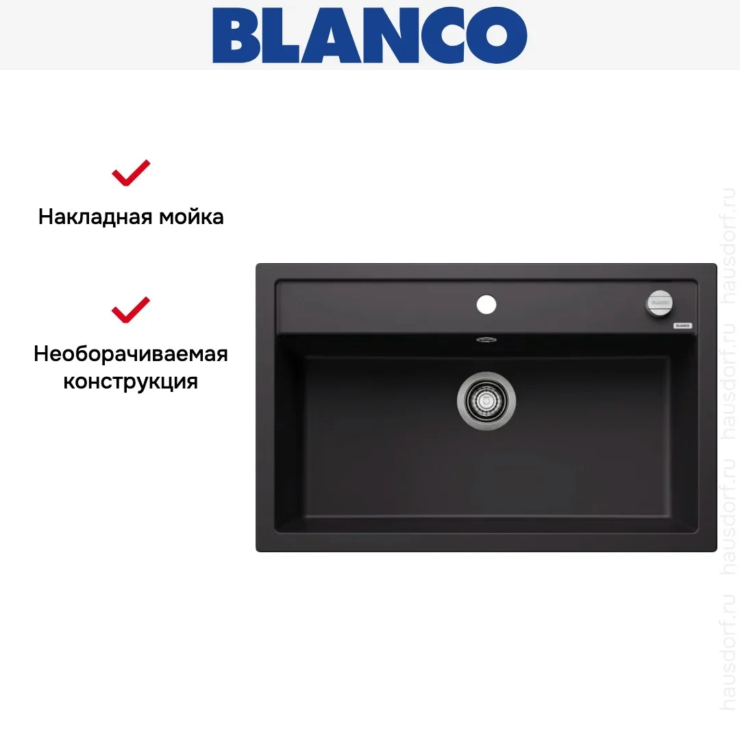 Мойка Blanco Dalago 8 — элегантная накладная модель из чёрного Silgranit, которая станет стильным центром рабочей зоны современной кухни. Прямоугольная форма и аккуратные геометрические линии делают её универсальным решением для интерьеров в минималистичном и индустриальном стилях. Габариты 81,5×51 см позволяют разместить изделие на стандартной столешнице, сохраняя пропорции и визуальную лёгкость рабочего пространства.