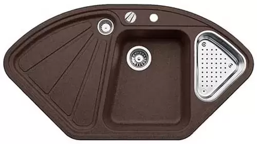 Модель DELTA сочетает функциональность и эстетику угловой мойки. Основная чаша имеет трапециевидную форму. Крыло немного углублено, что позволяет использовать его в качестве дополнительной рабочей зоной. Коландер из нержавеющей стали повторяет форму чаши и служит для мытья и сушки овощей и фруктов. Рельефное крыло оборудовано дополнительным сливом для эффективного удаления излишков жидкости. Закругленные углы упрощают очистку труднодоступных мест.
